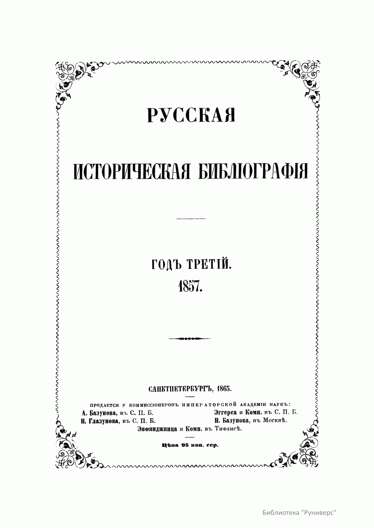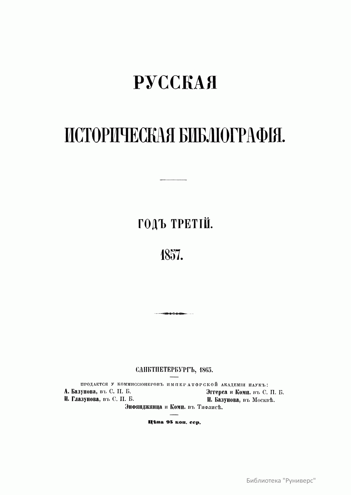 Русская историческая библиография. Год третий. 1857