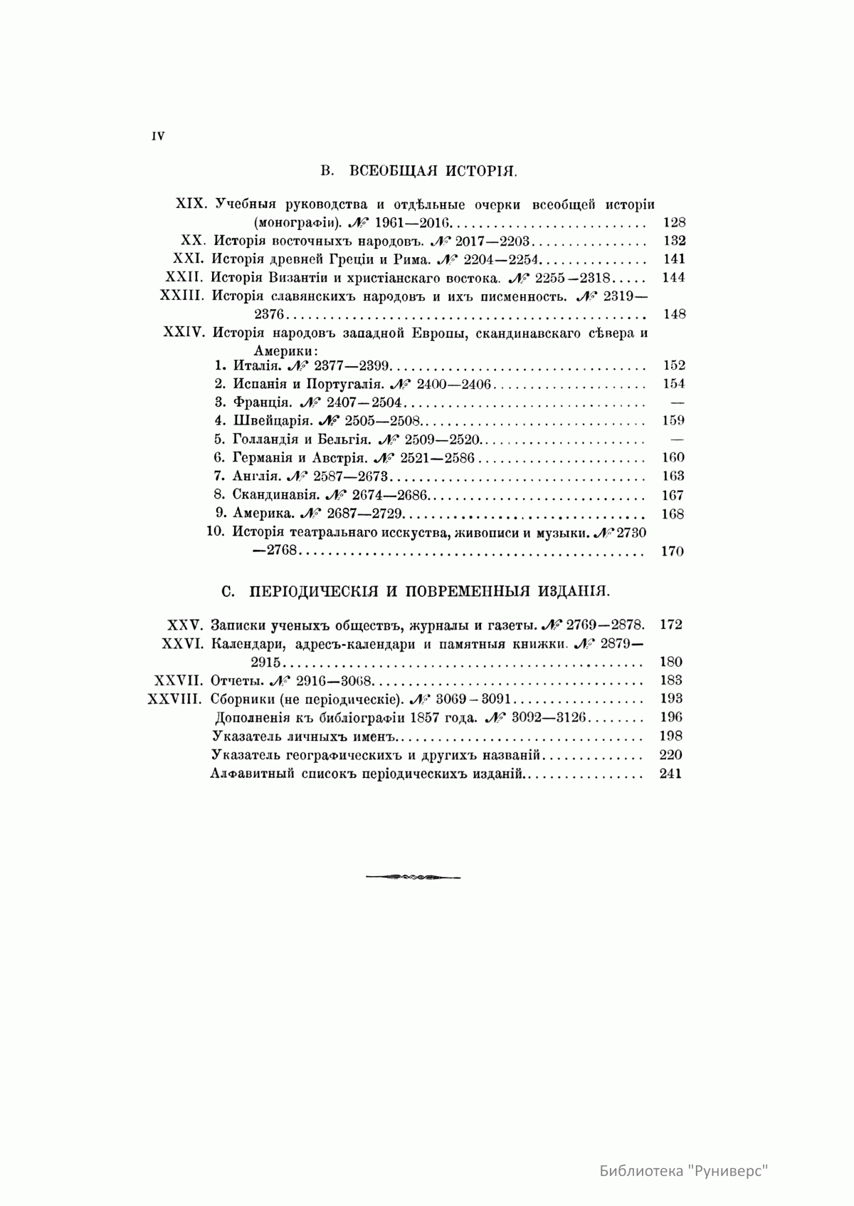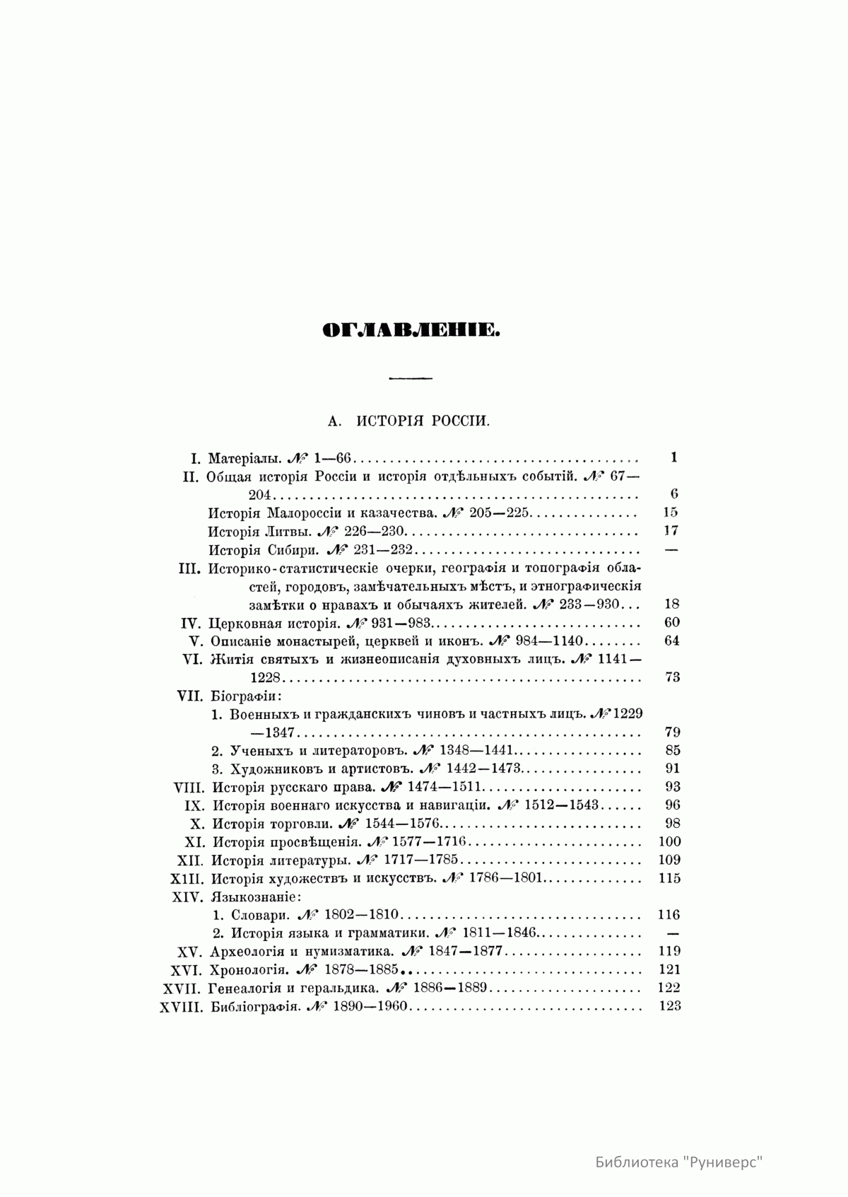 В десяти томах «Русской исторической библиографии» заключается описание свыше 44 000 книг, карт, периодических изданий, статей из журналов и газет по русской и всеобщей истории. Кроме этого, богато представлена литература о Крымской войне 1853–1856 гг., реформе 1860-х гг., польском восстании 1863–1864 гг. и о других событиях.