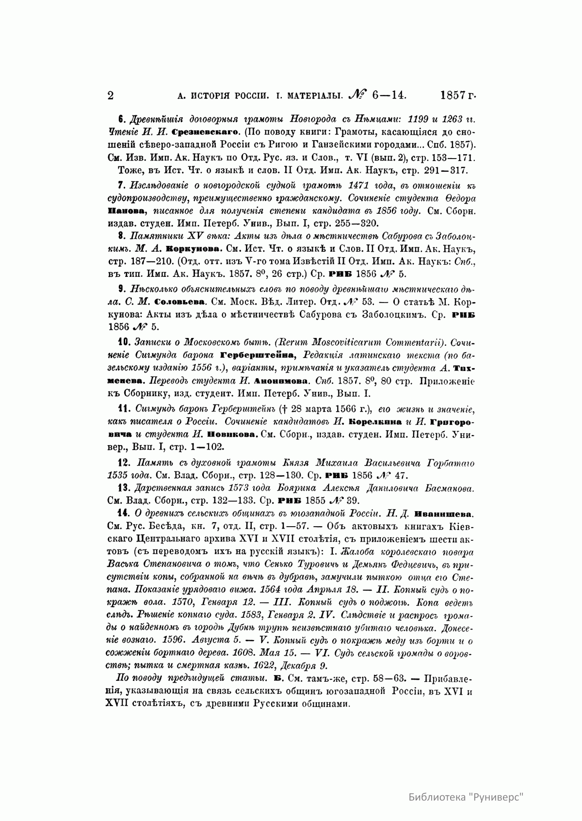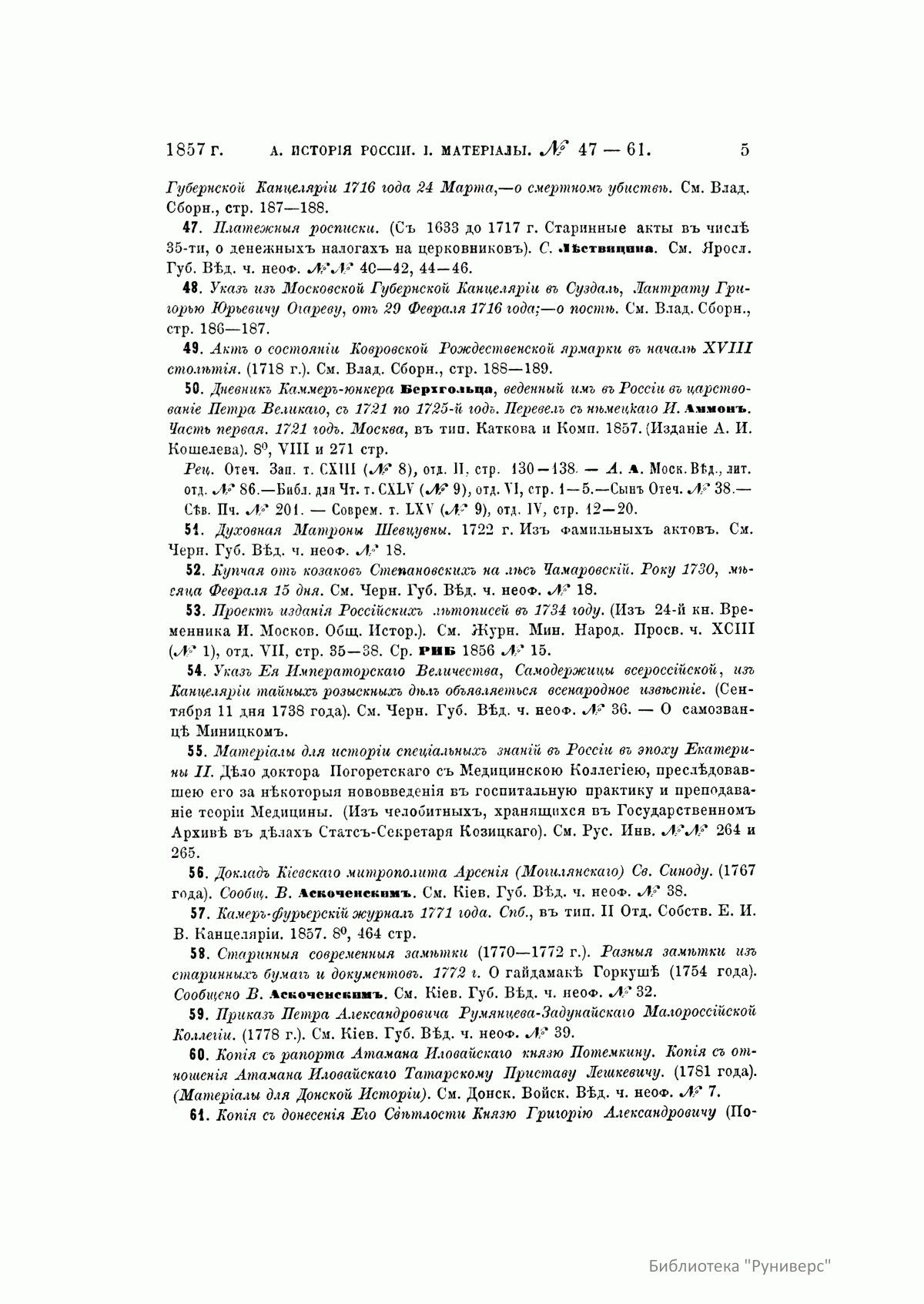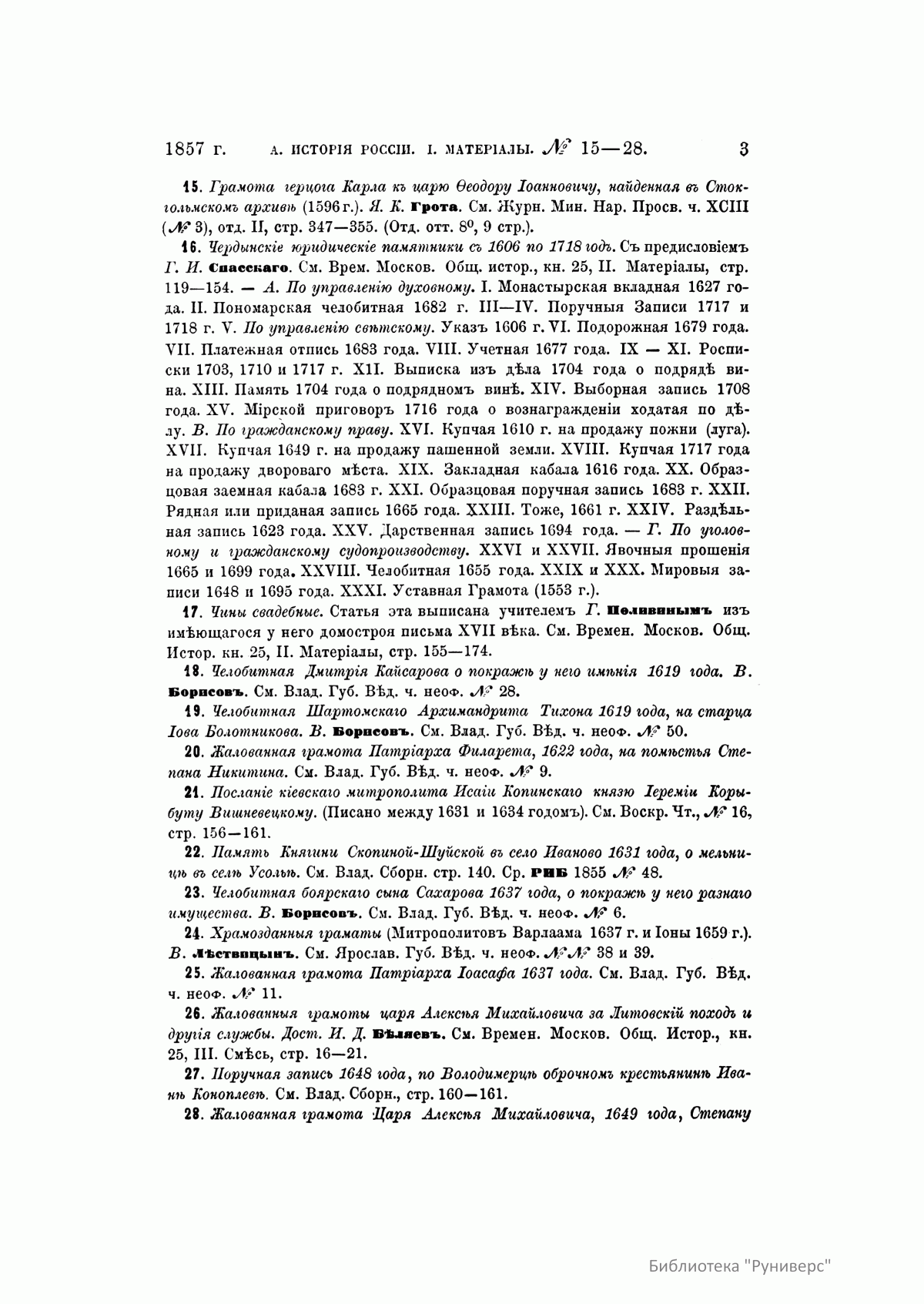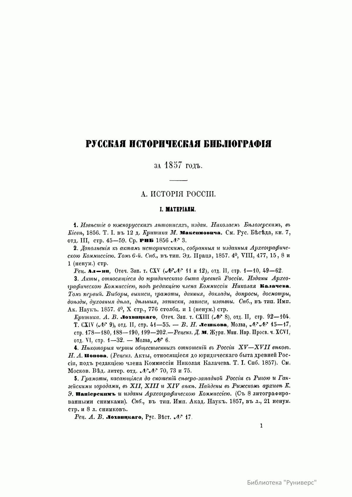 Русская историческая библиографiя. Годъ третiй. 1857