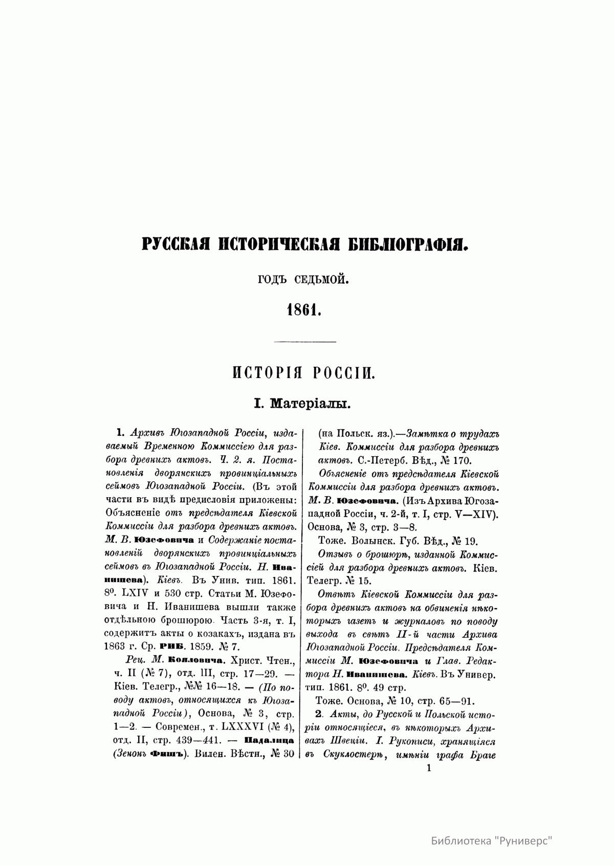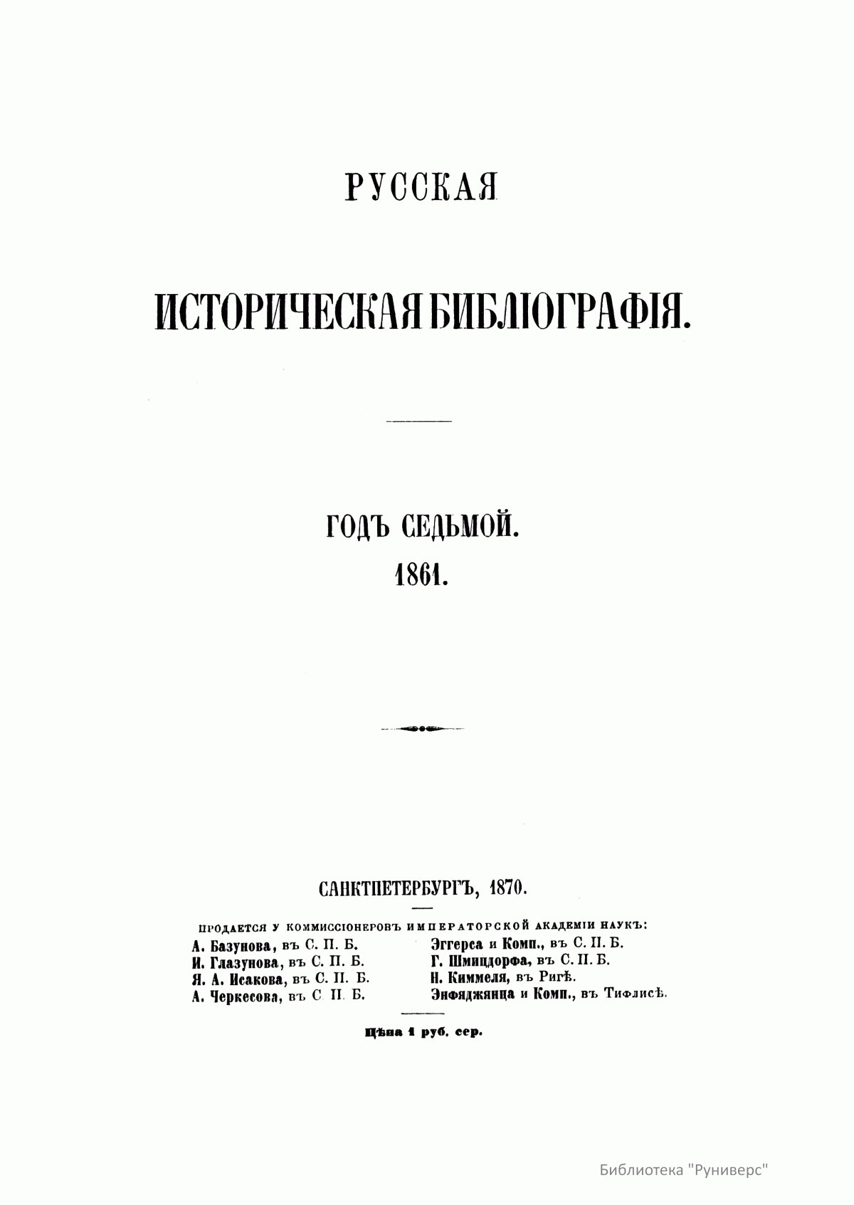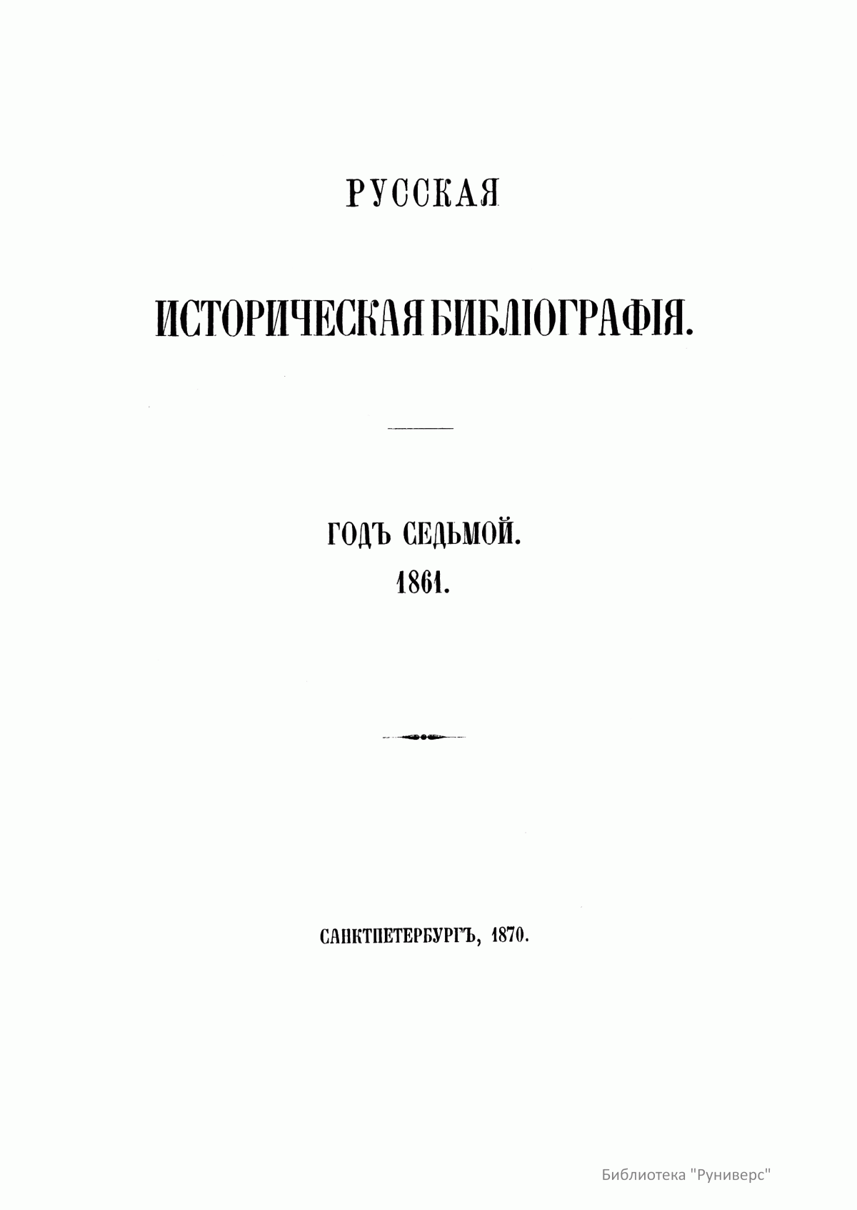 Русская историческая библиографiя. Годъ седьмой. 1861
