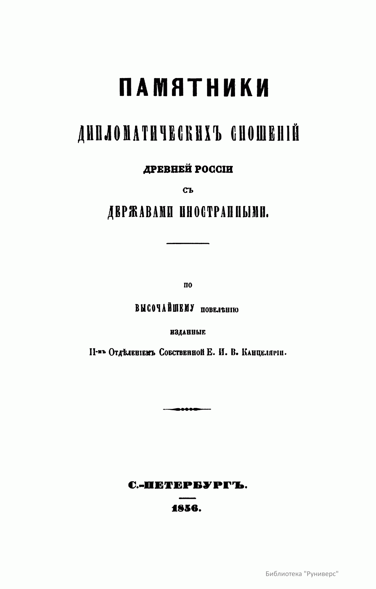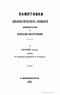 Памятники дипломатическихъ сношенiй древней Россiи съ державами иностранными