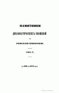 Памятники дипломатических сношений с Римскою Империею. Том IV. С 1661 по 1674 год