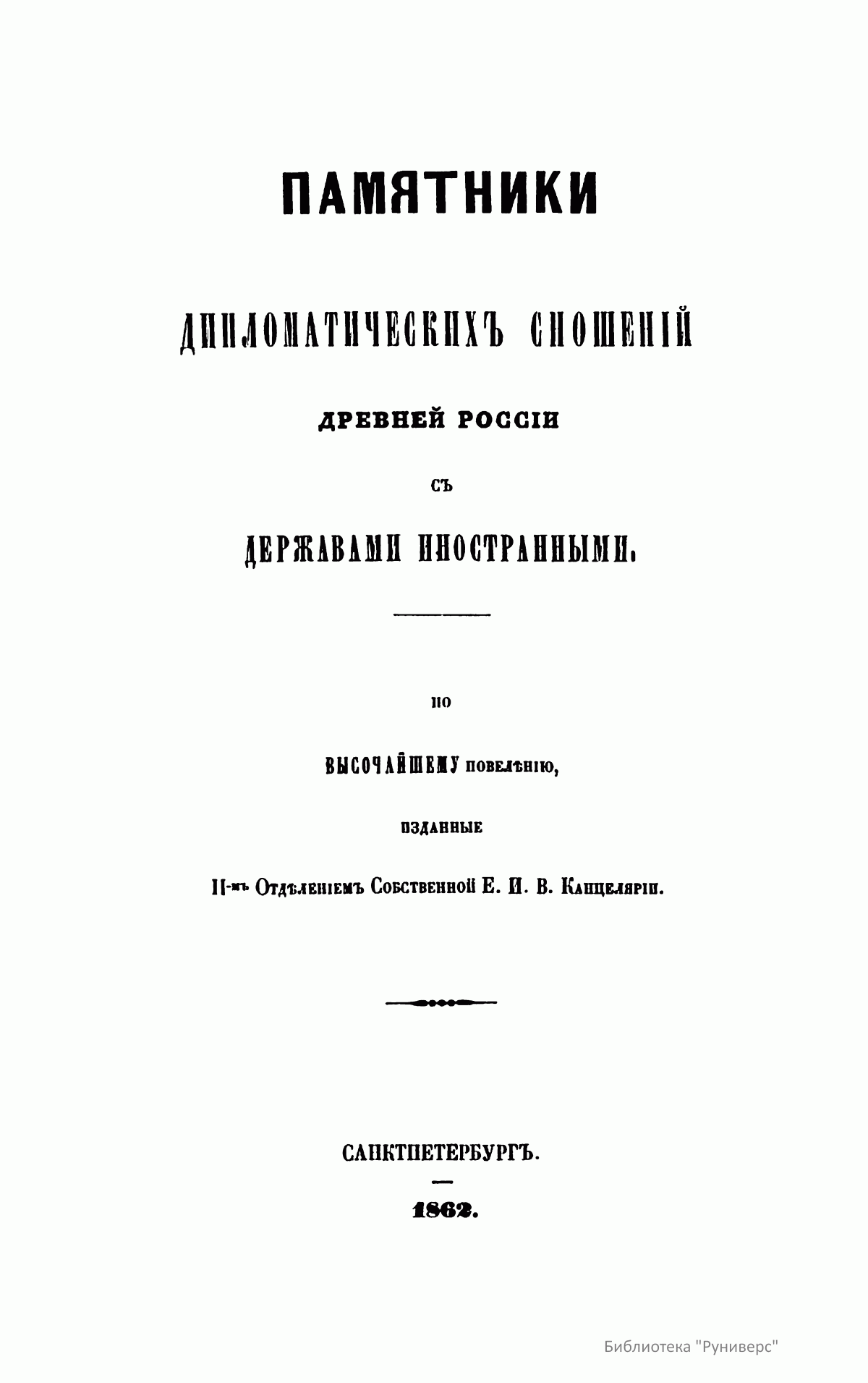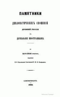 Памятники дипломатическихъ сношенiй древней Россiи съ державами иностранными
