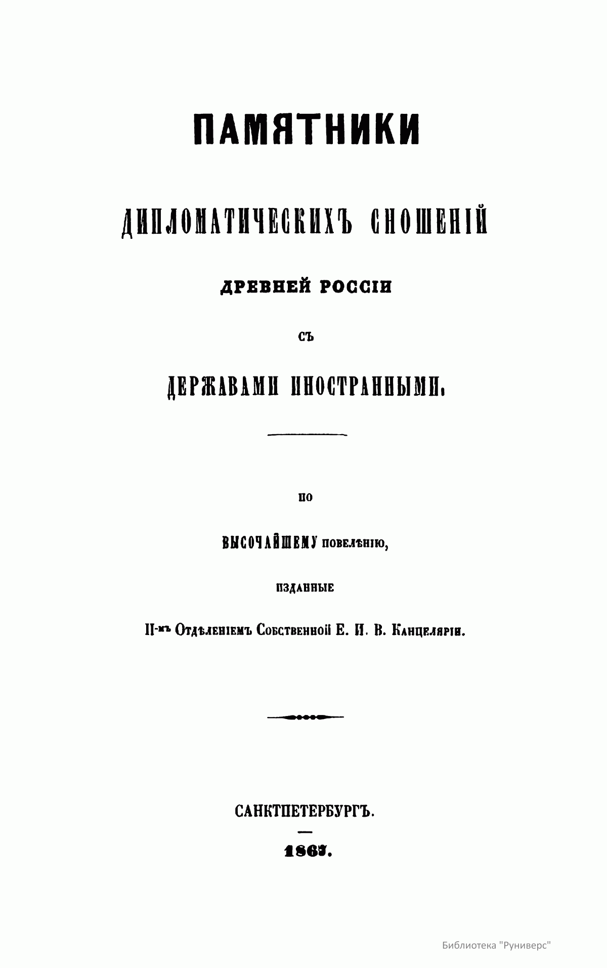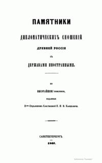 Памятники дипломатическихъ сношенiй древней Россiи съ державами иностранными