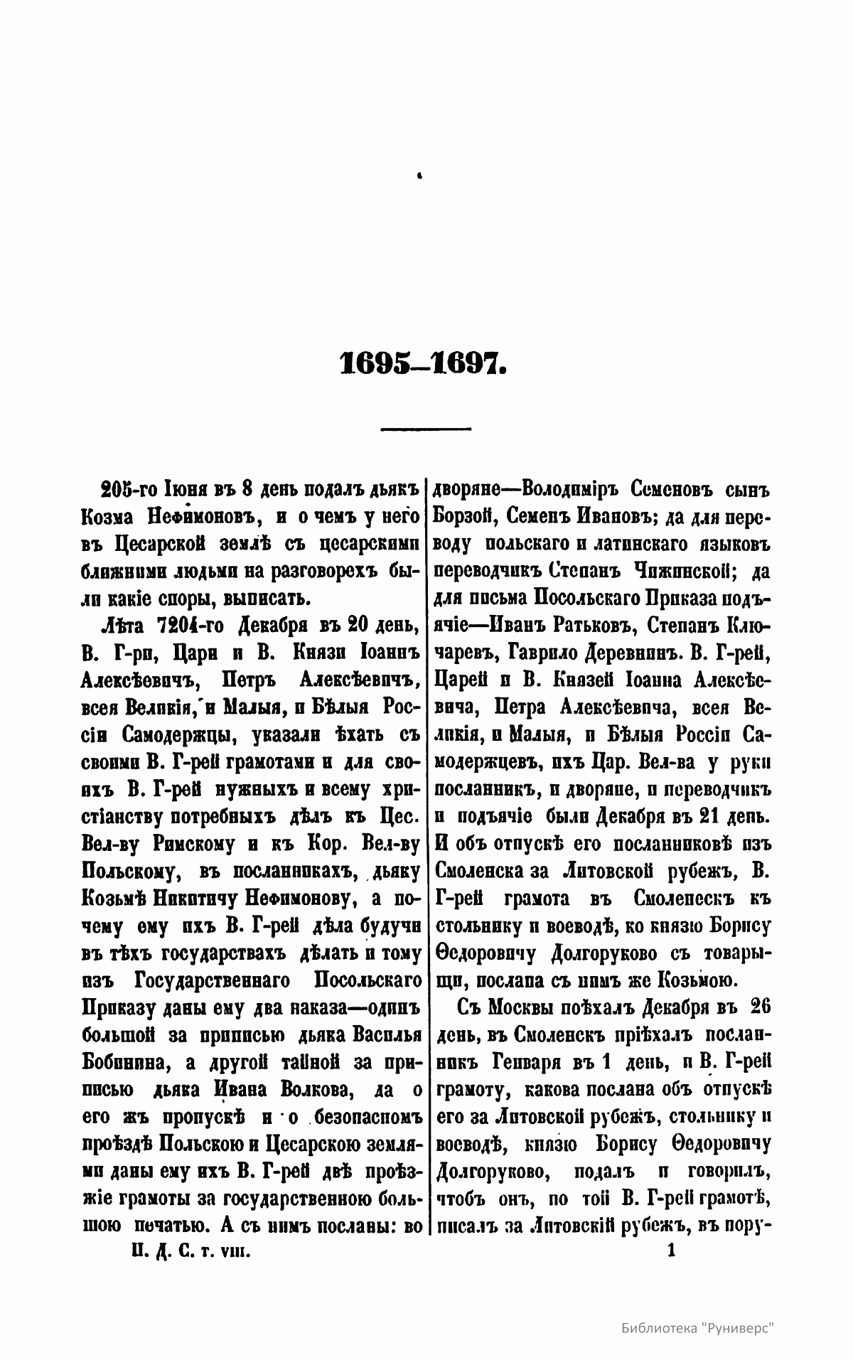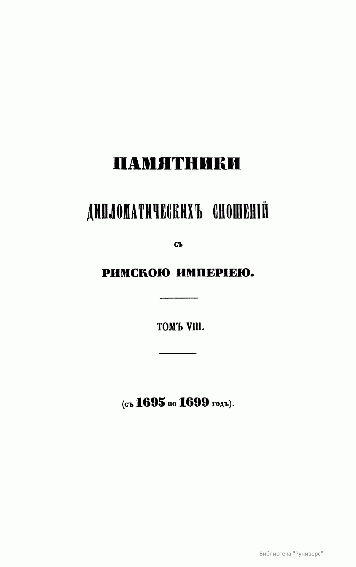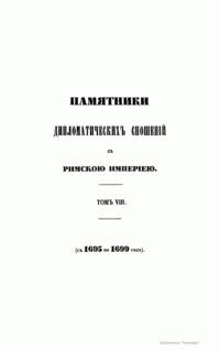 Памятники дипломатических сношений с Римскою Империею. Том VIII. С 1695 по 1699 год