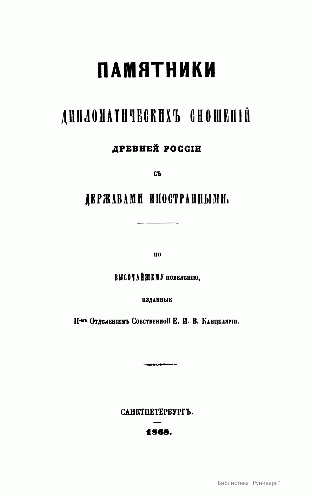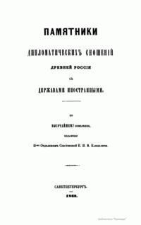 Памятники дипломатическихъ сношенiй древней Россiи съ державами иностранными