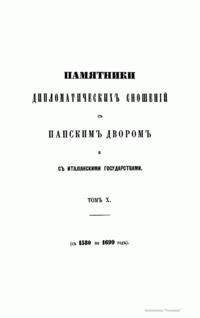 Памятники дипломатических сношений с Папским двором и с италианскими госдарствами. Том X. С 1580 по 1699 год