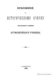Приложения к историческому очерку образования и развития артиллерийского училища