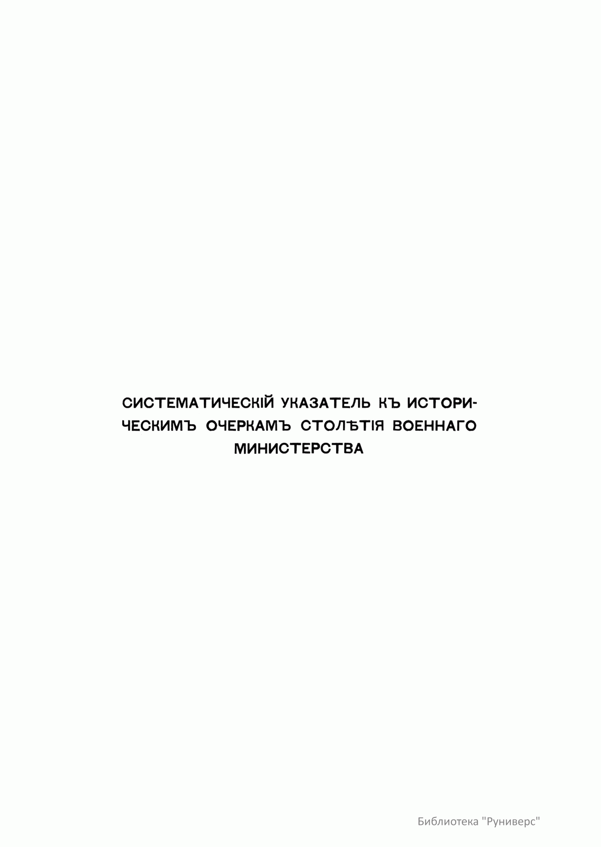 Систематический указатель к историческим очеркам столетия военного министерства. Выпуск I. Книга 2