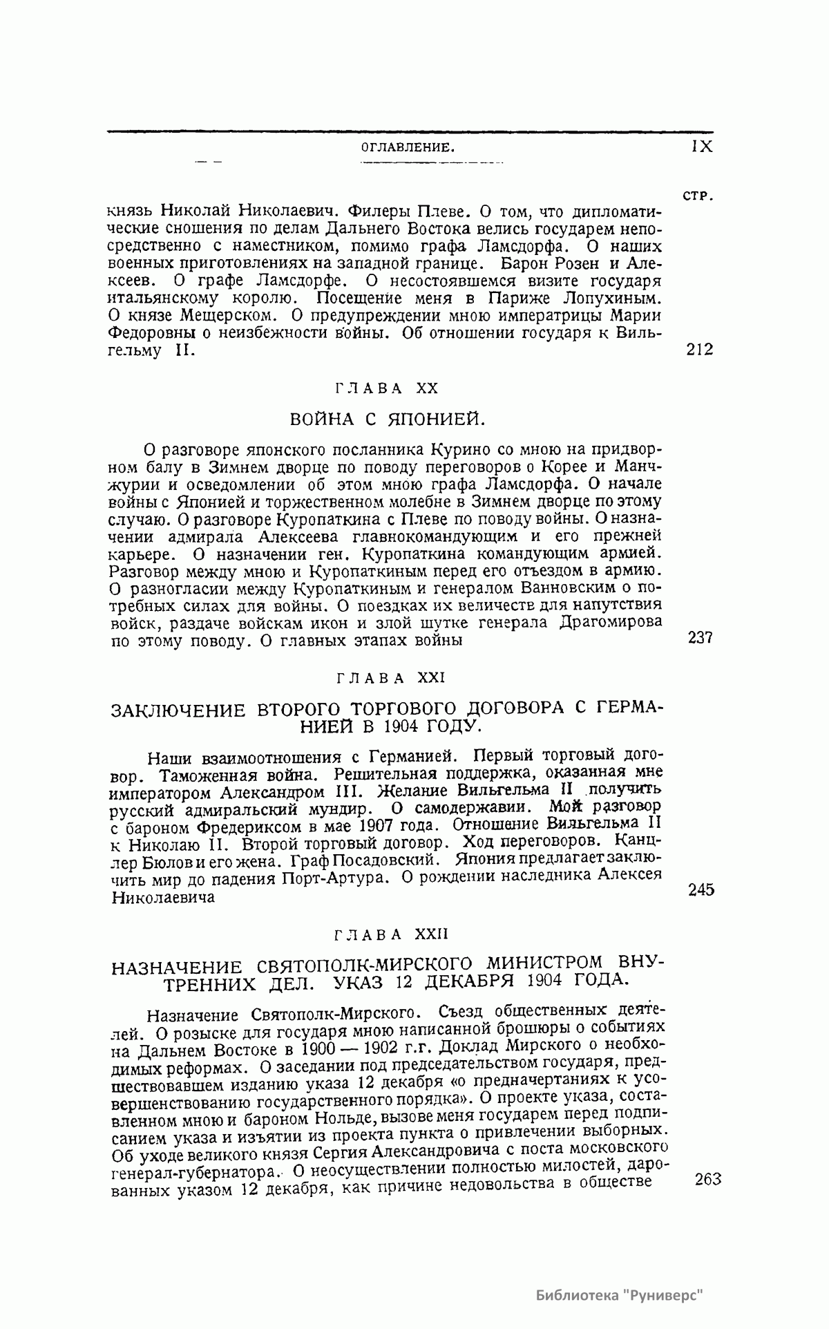 Воспоминания графа, русского государственного деятеля Сергея Юльевича Витте (1849 – 1915) опубликованы в трех томах. Первый том охватывает события от смерти Александра III до 17 октября 1905 года. Второй том – от манифеста 17 октября 1905 года до убийства Столыпина в 1911 г. В третьем томе изложение доведено до смерти Александра III и включает воспоминания о детстве автора. Все три тома снабжены подробным оглавлением.