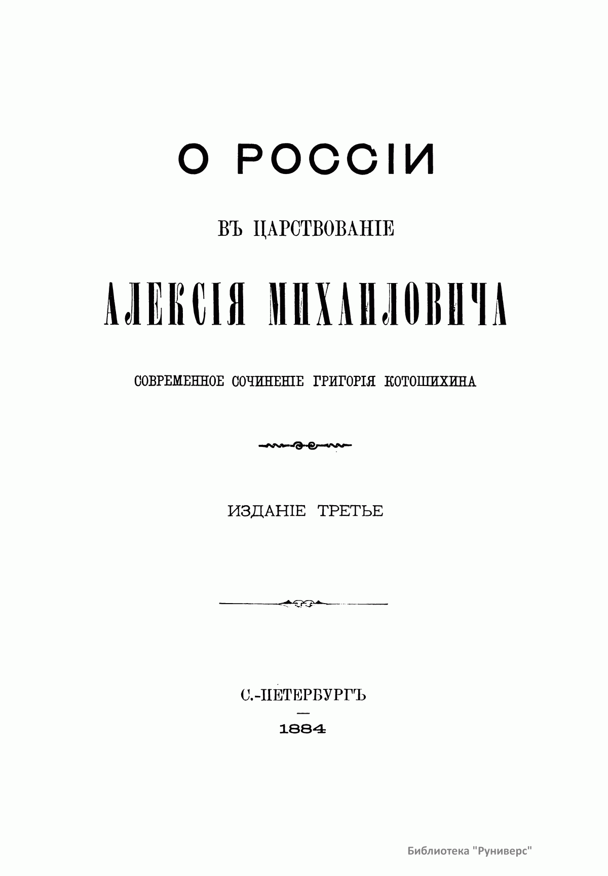 Алексей Михайлович (1629 – 1676) – русский царь с 1645 г. Сын царя Михаила Федоровича. Автор настоящего издания Котошихин Григорий Карпович – современник Алексея Михайловича, в конце 50-х гг. XVII в. был писцом, а затем подьячим в посольском приказе, играл видную роль в переговорах со Швецией. Сочинение Котошихина разделяется на 13 глав. Здесь он рассказывает о царе и царской семье, их образе жизни, придворных церемониях, о царских чиновных и служилых людях, о сношениях московских царей с иноземными государями, о царских дворах, приказах, городах, их управлении, об организации войска, о торговых людях и торговле, о крестьянах, боярах и их быте. Хорошо знакомый со всеми сторонами жизни Московского государства, Котошихин сообщает важные сведения для изучения государственной и общественной жизни допетровской Руси. Усвоив многие западные воззрения, он отрицательно относится к организации Московского государства, осуждает предрассудки и невежество.