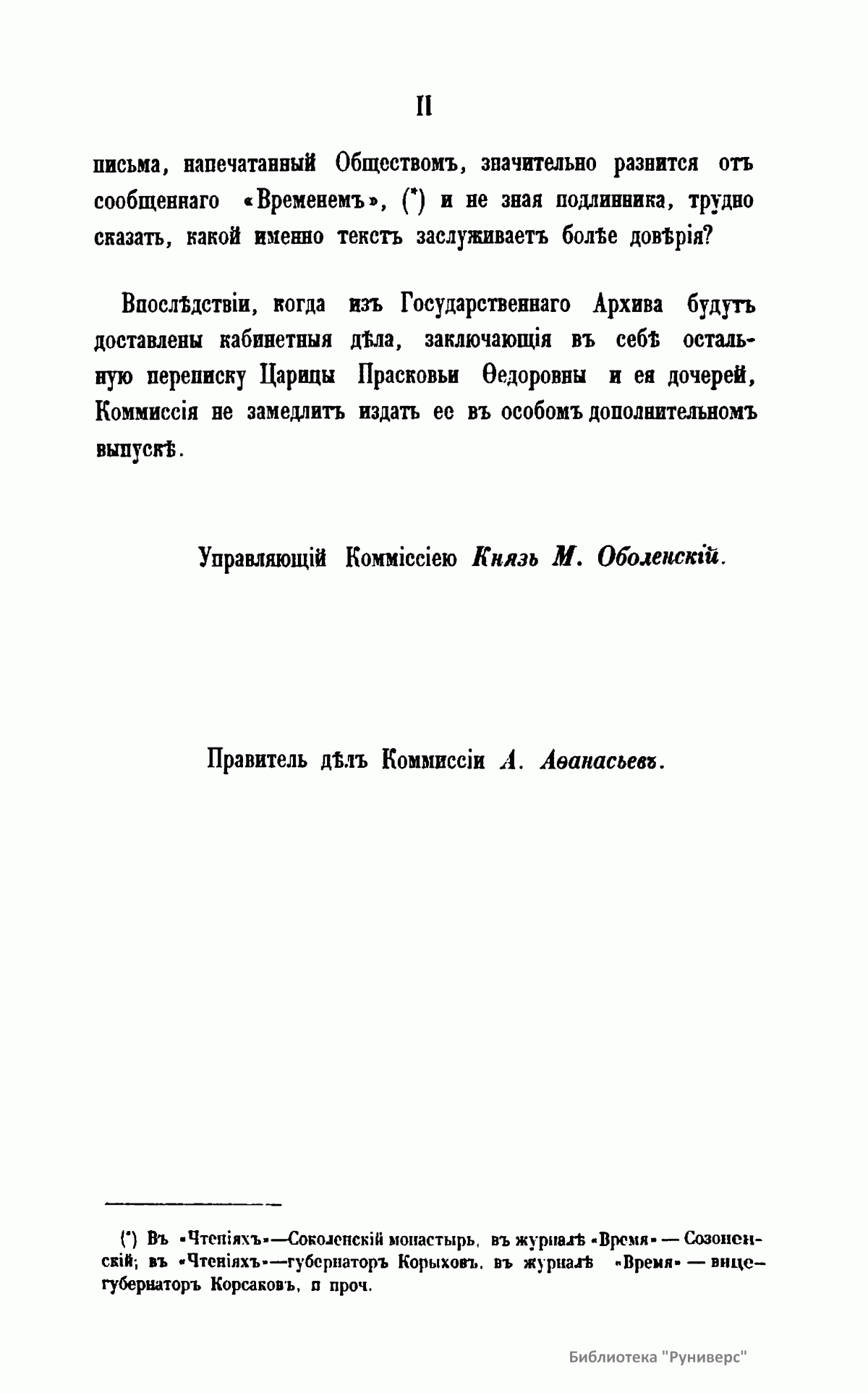Настоящие письма изданы комиссией печатания государственных грамот и договоров, состоящей при Московском главном архиве министерства иностранных дел. Кроме материалов Главного архива комиссия пользовалась собраниями Государственного архива С.-Петербурга, Императорской публичной библиотеки и Румянцевского музея. Письма русских государей и других особ царского семейства представляют собой любопытный исторический памятник.