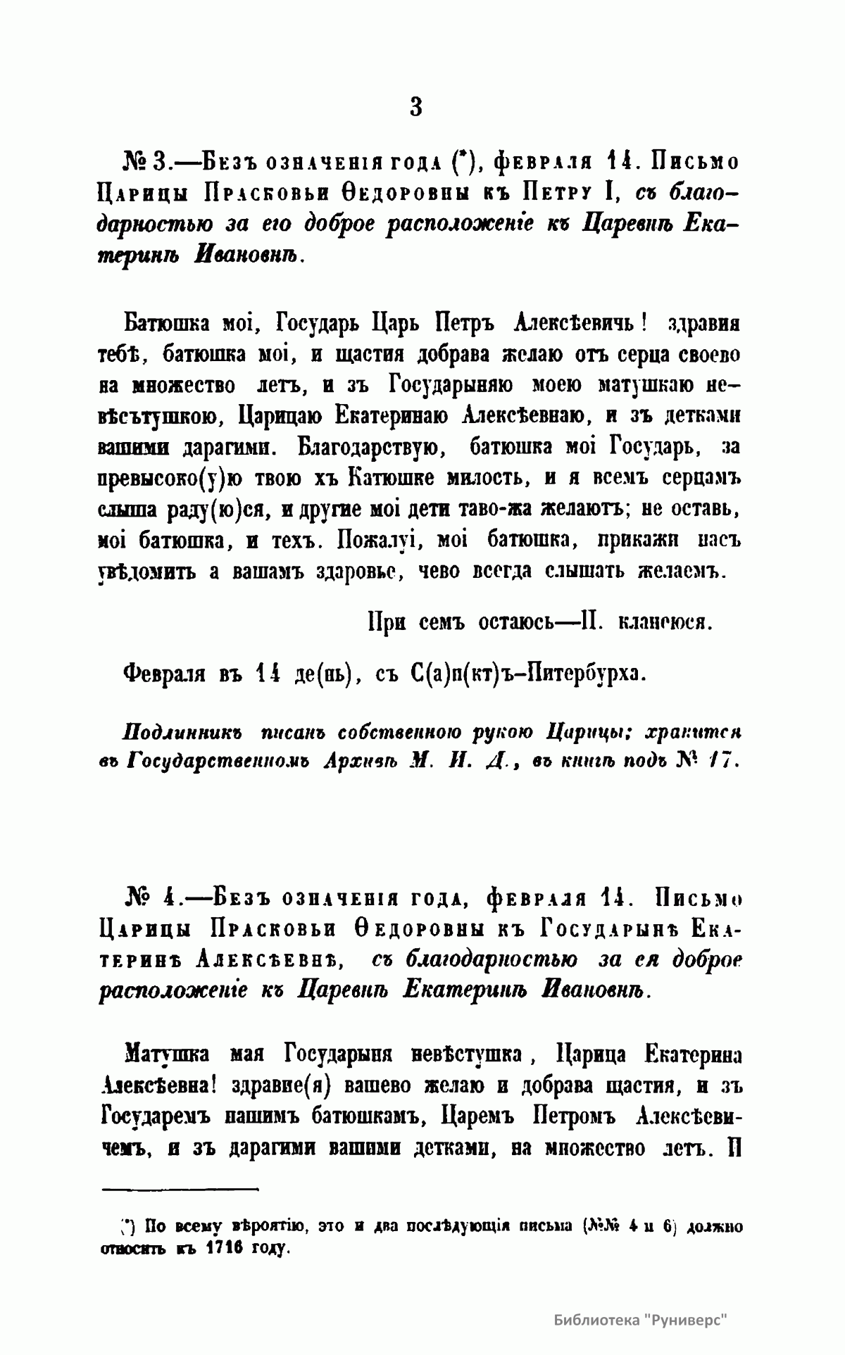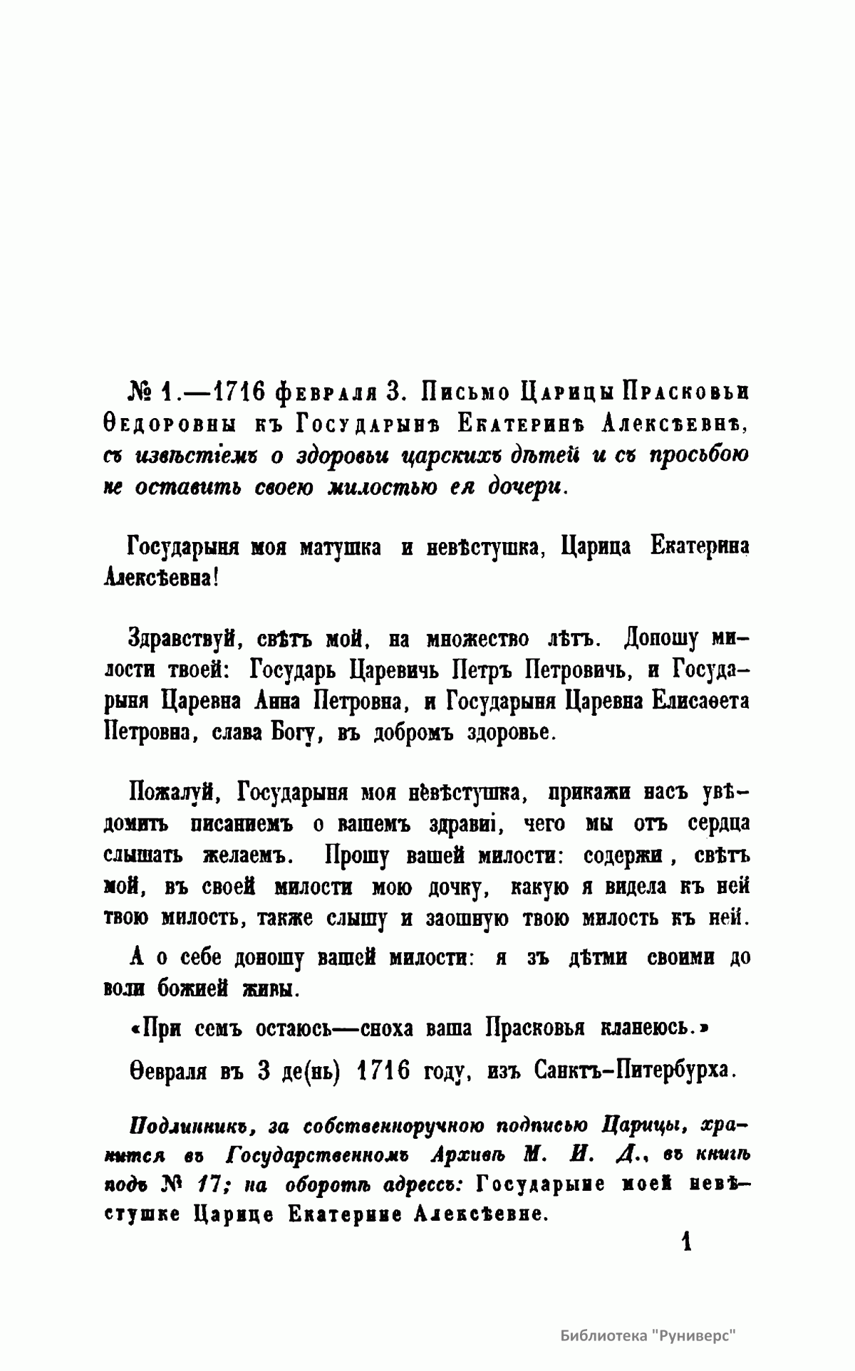 II. Переписка царицы Прасковьи Федоровны и дочерей ее Екатерины и Прасковьи