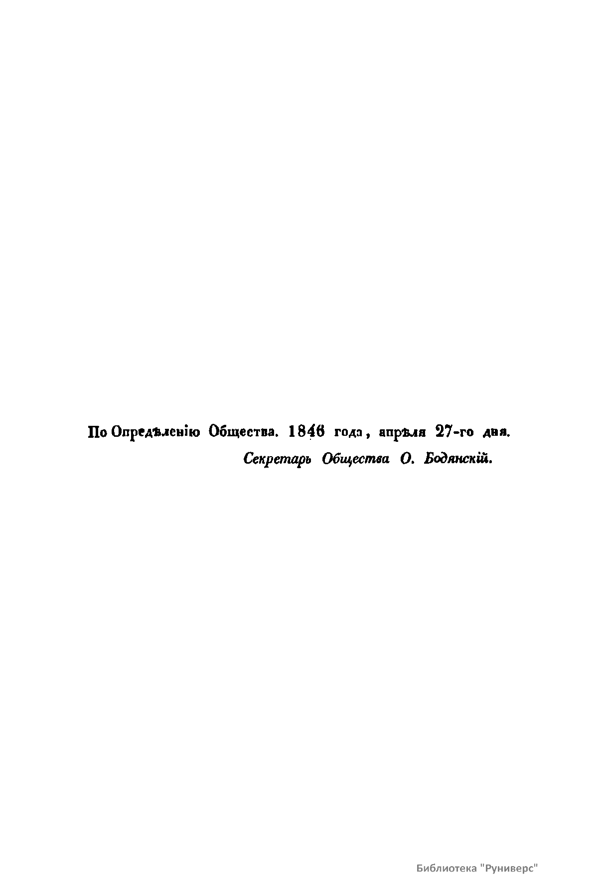 «Чтения в Императорском обществе истории и древностей российских» – периодическое издание трудов Общества. Выпускались отдельными книгами на протяжении 72 лет с десятилетним перерывом. Первая книга вышла в свет в январе 1846 г. Каждая книга состояла из четырех разделов: исторических исследований, отечественных исторических документальных материалов, иностранных материалов и смеси. Публиковались также исследования и материалы по археологии, этнографии, нумизматике, палеографии и другим дисциплинам. До июня 1848 г. было выпущено 23 книги «Чтений». В июньской книге за 1848 г. О. М. Бодянский поместил записки Дж. Флетчера о Московском государстве, что вызвало недовольство Николая I. «Чтения» были закрыты, а Бодянский удален из Московского университета. Издание «Чтений» возобновилось только в 1858 г., когда Бодянский снова стал секретарем общества. Издание приняло славянофильское направление, к прежним четырем разделам «Чтений» прибавился раздел славянских материалов. С 1858 г. «Чтения» выходили в свет четыре раза в год.