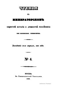 Чтения в Императорском Обществе Истории и Древностей Российских при Московском Университете. Год первый. №4