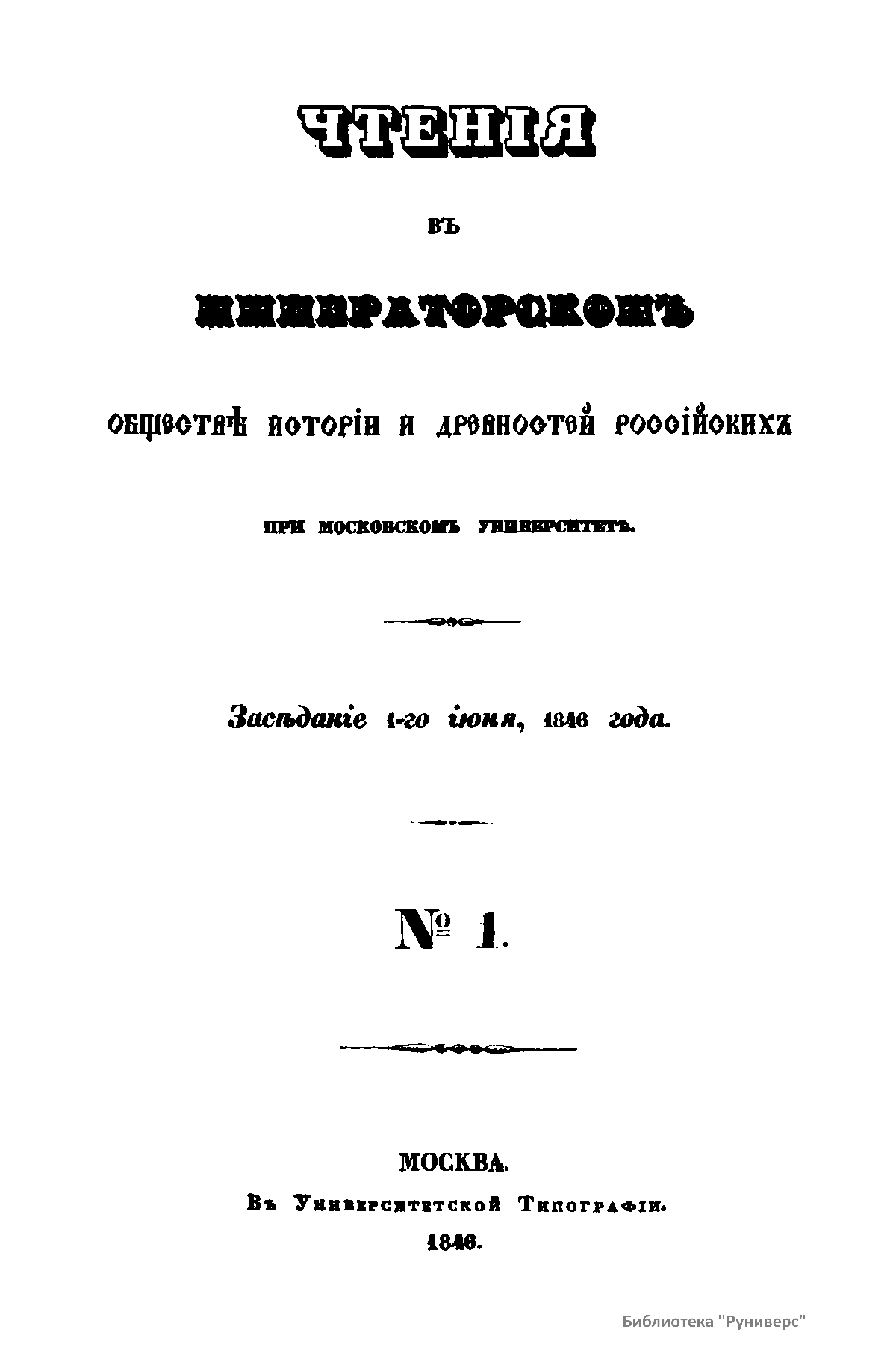 Чтенiя въ Императорскомъ Обществѣ Исторiи и Древностей Россiйскихъ при Московскомъ Университетѣ. Годъ второй. №1