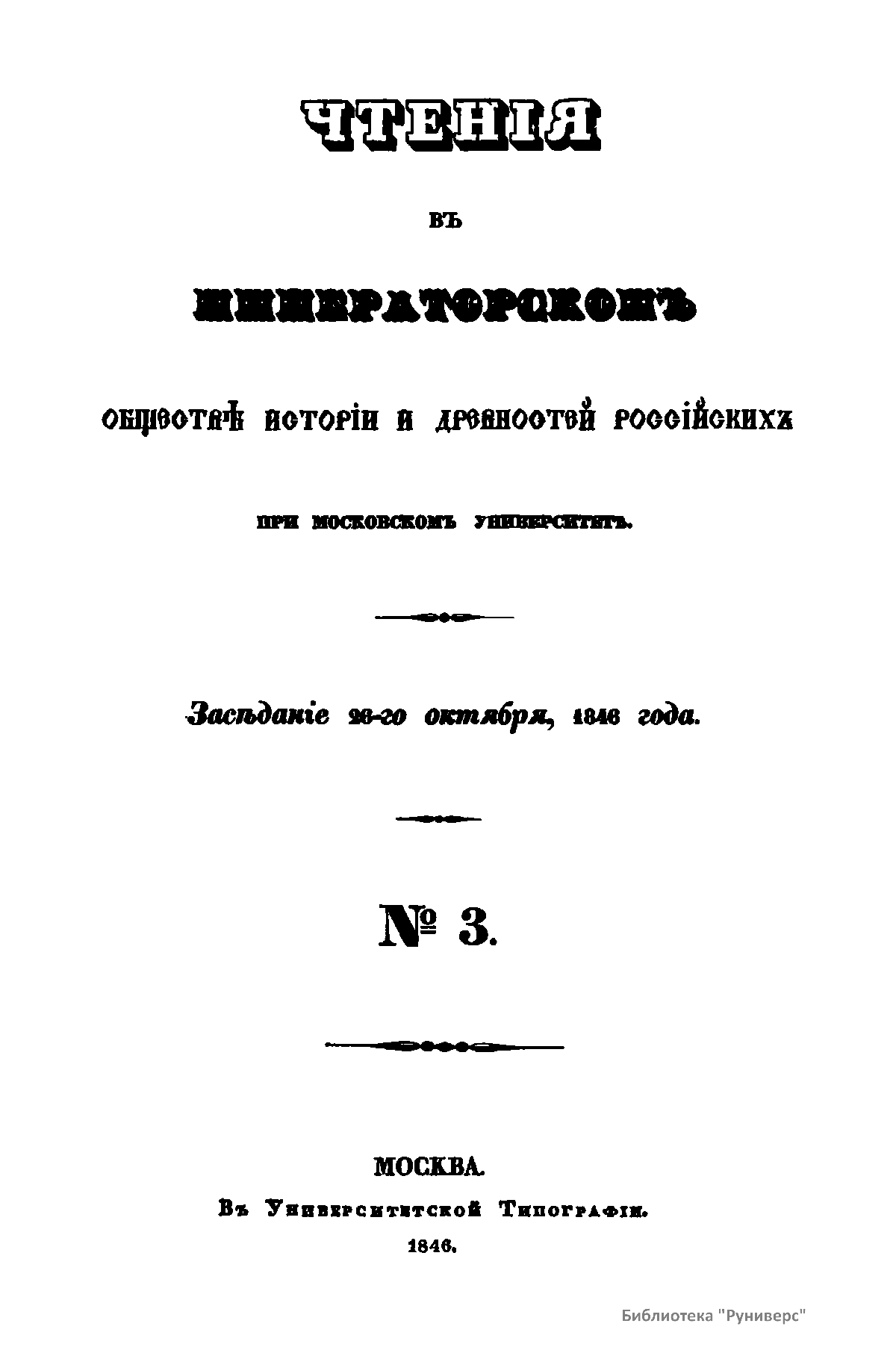 Чтенiя въ Императорскомъ Обществѣ Исторiи и Древностей Россiйскихъ при Московскомъ Университетѣ. Годъ второй. №3