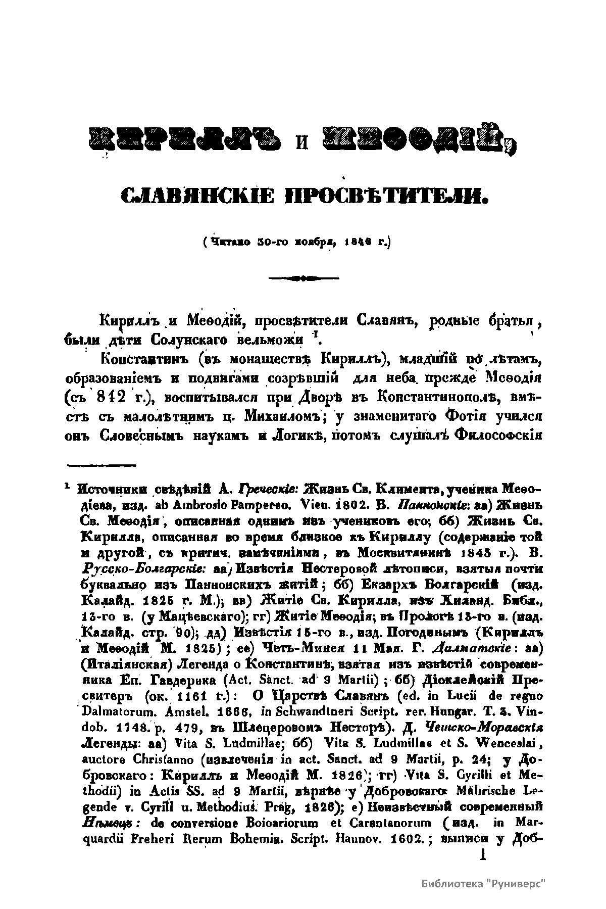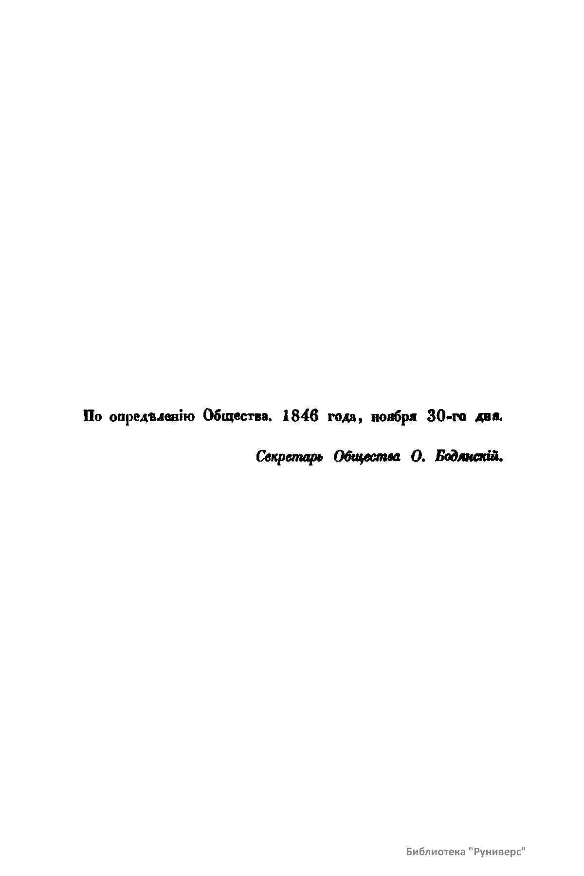 «Чтения в Императорском обществе истории и древностей российских» – периодическое издание трудов Общества. Выпускались отдельными книгами на протяжении 72 лет с десятилетним перерывом. Первая книга вышла в свет в январе 1846 г. Каждая книга состояла из четырех разделов: исторических исследований, отечественных исторических документальных материалов, иностранных материалов и смеси. Публиковались также исследования и материалы по археологии, этнографии, нумизматике, палеографии и другим дисциплинам. До июня 1848 г. было выпущено 23 книги «Чтений». В июньской книге за 1848 г. О. М. Бодянский поместил записки Дж. Флетчера о Московском государстве, что вызвало недовольство Николая I. «Чтения» были закрыты, а Бодянский удален из Московского университета. Издание «Чтений» возобновилось только в 1858 г., когда Бодянский снова стал секретарем общества. Издание приняло славянофильское направление, к прежним четырем разделам «Чтений» прибавился раздел славянских материалов. С 1858 г. «Чтения» выходили в свет четыре раза в год.