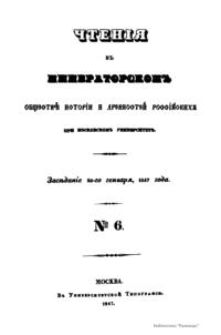 Чтения в Императорском Обществе Истории и Древностей Российских при Московском Университете. Год второй. №6