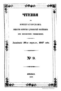 Чтенiя въ Императорскомъ Обществѣ Исторiи и Древностей Россiйскихъ при Московскомъ Университетѣ. Годъ второй. №9