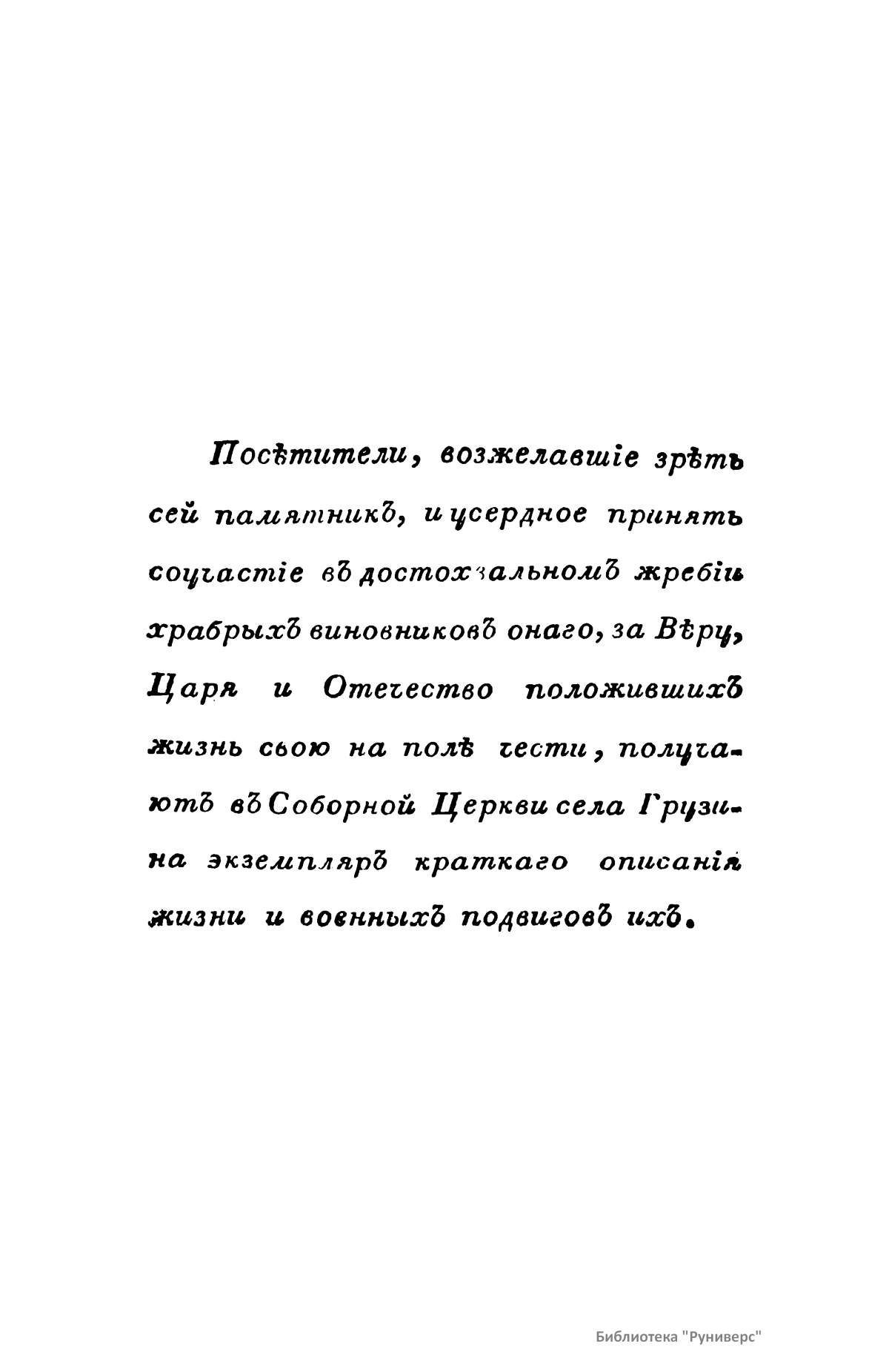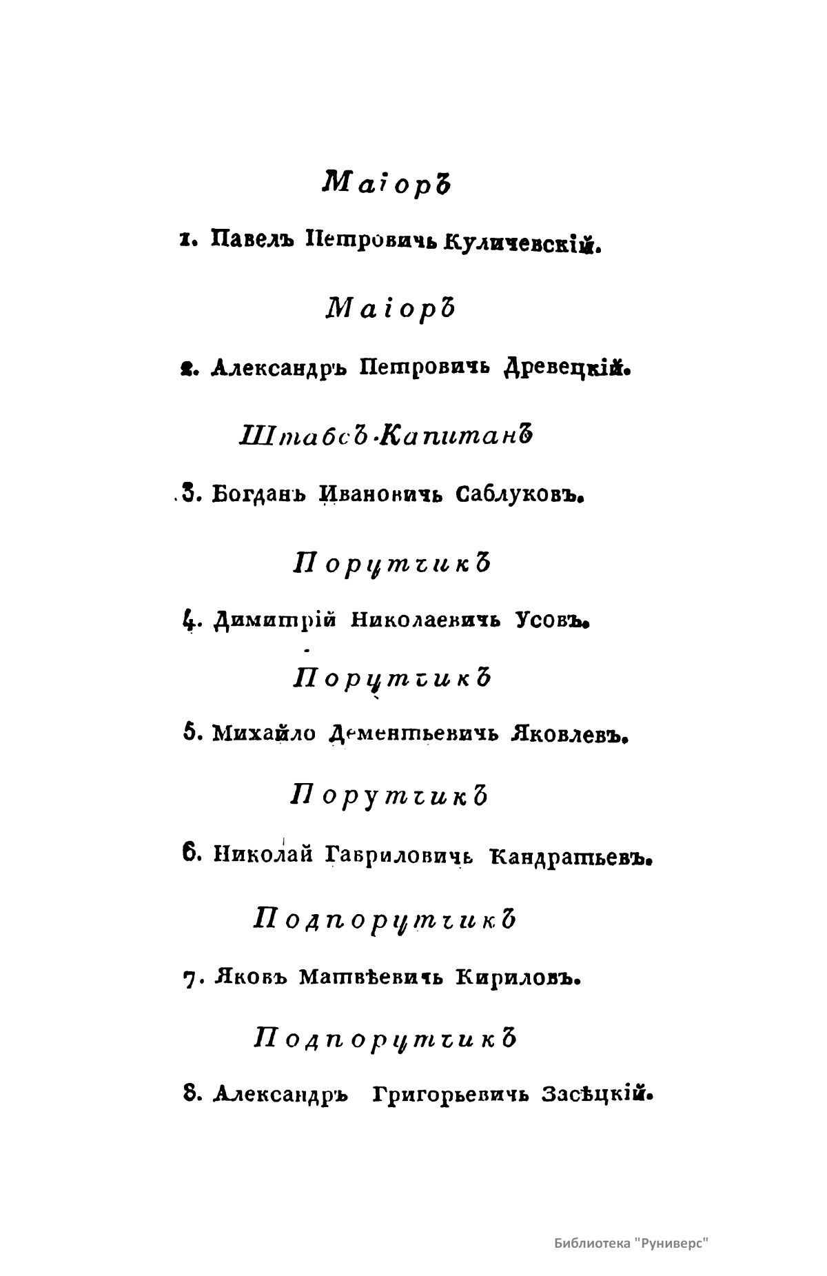 Бiографiи штабъ и оберъ-офицеровъ Гренадерскаго Графа Аракчеева полка, положившихъ жизнь свою защищая Государя и Отечество въ сраженiяхъ 1812, 1813 и 1814 годовъ