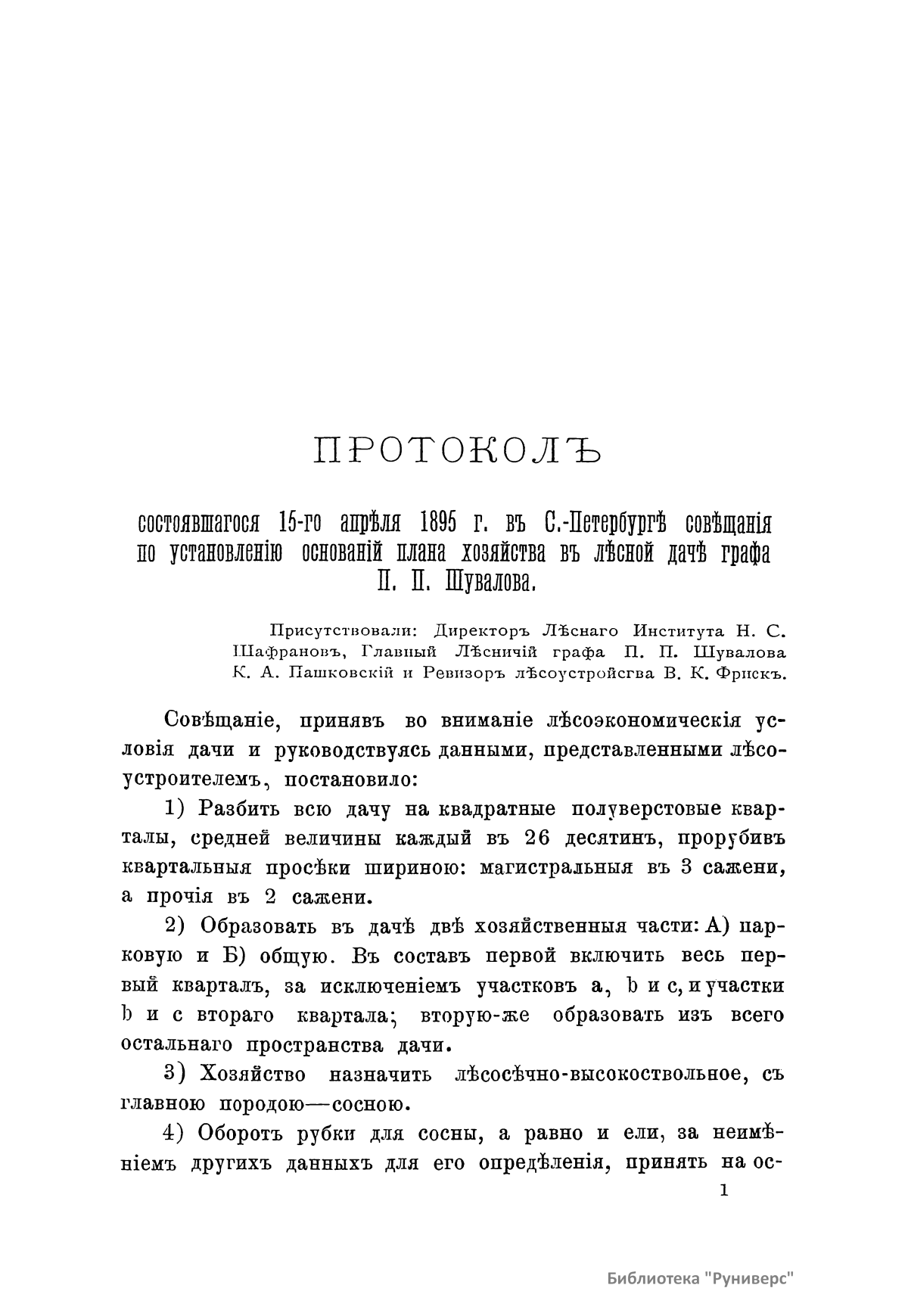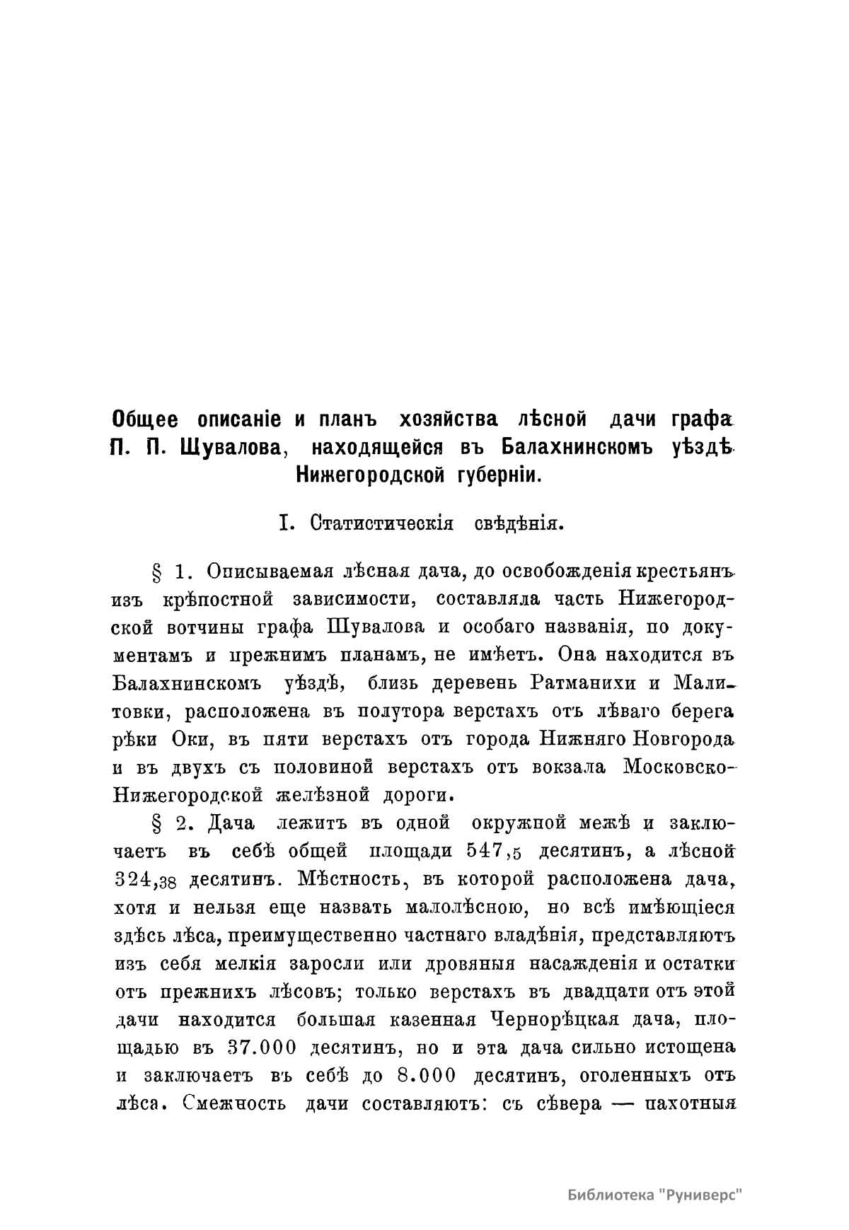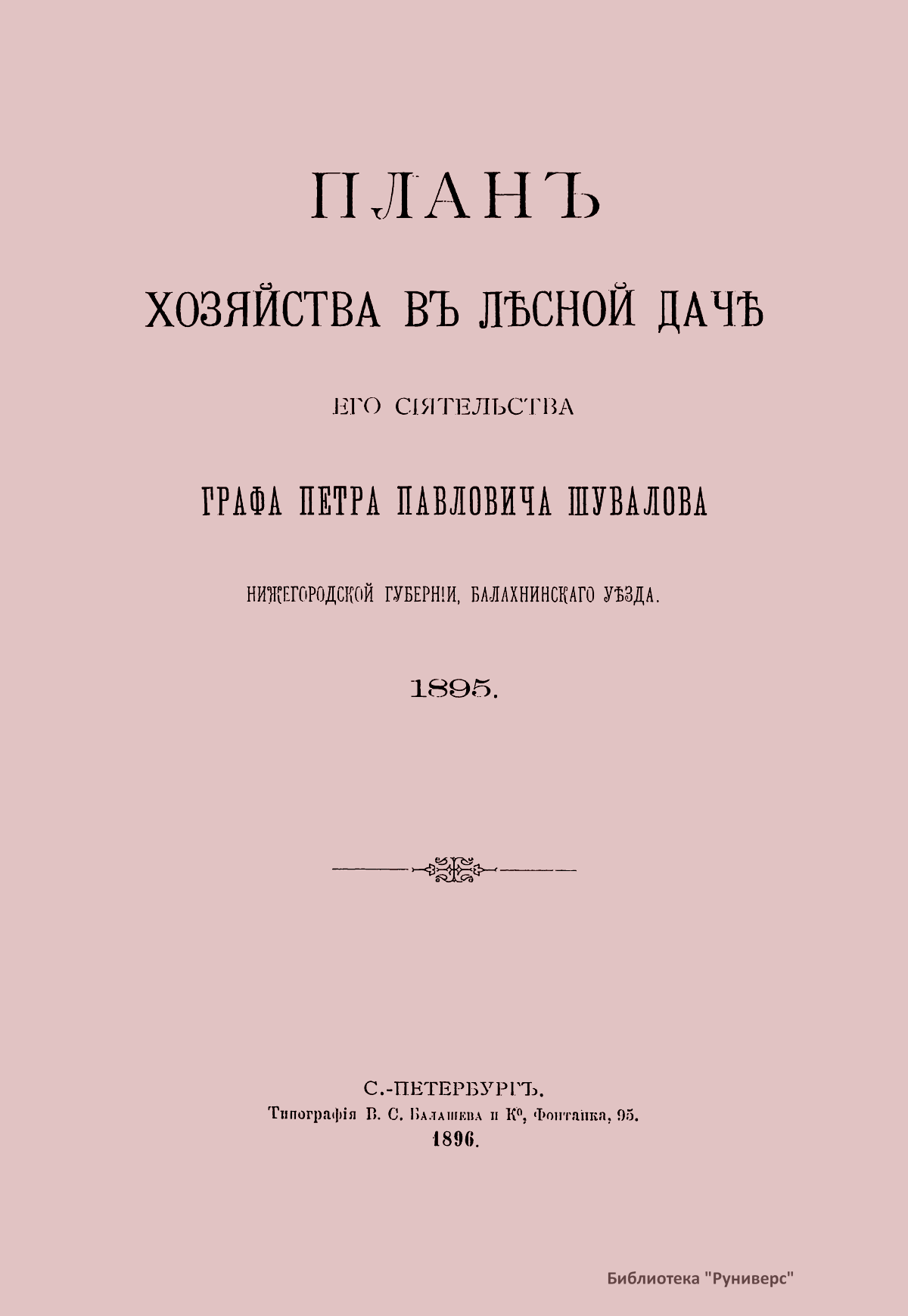 Планъ хозяйства въ лѣсной дачѣ его сiятельства Графа Петра Павловича Шувалова Нижегородской губернiи, Балахнинскаго уѣзда. 1895