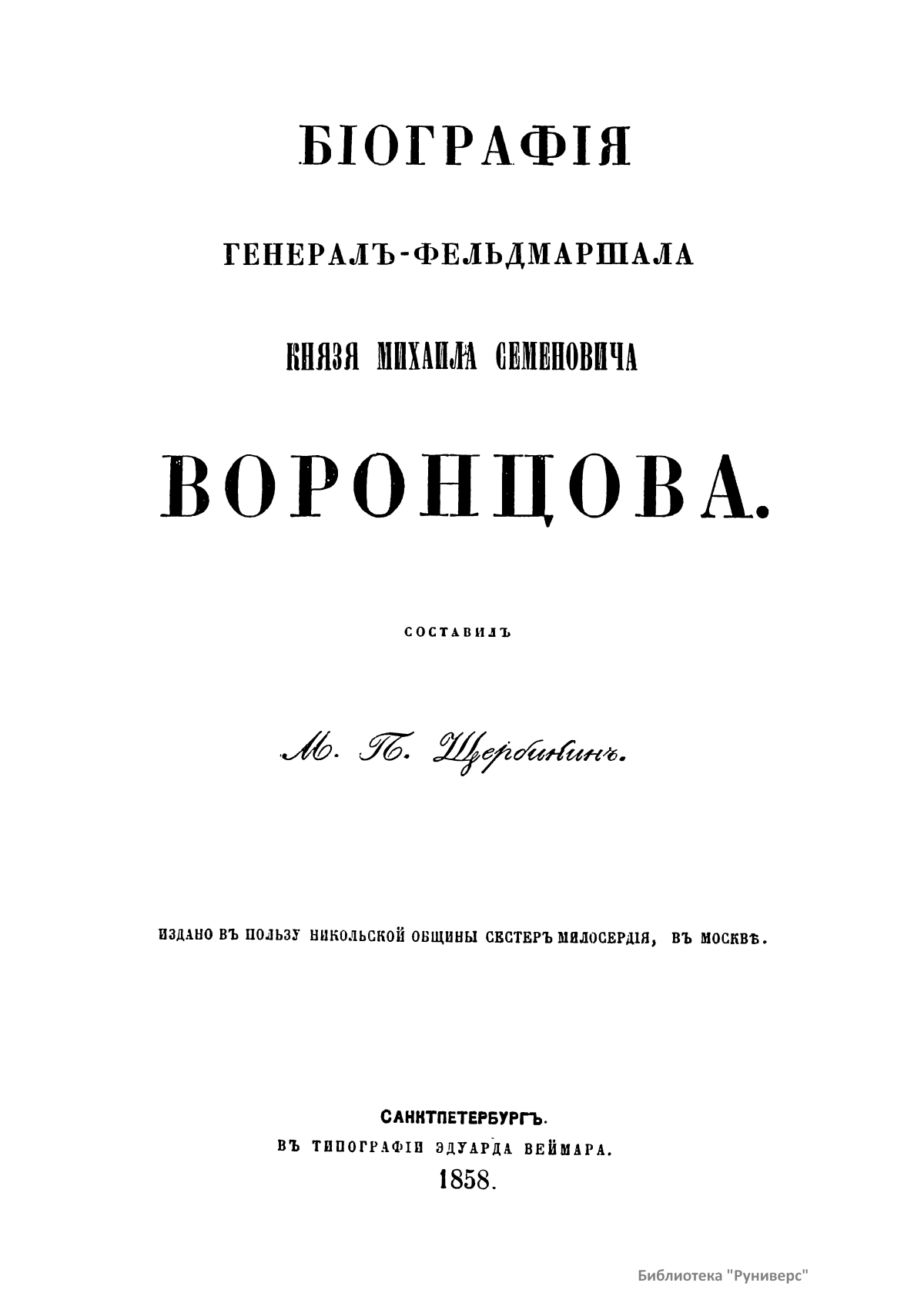 Бiографiя генералъ-фельдмаршала Князя Михаила Семеновича Воронцова