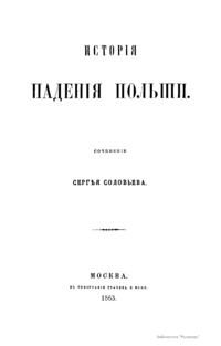 В 1772-м, 1793-м и 1795 гг. Пруссия, Австрия и Россия совершают раздел Речи Посполитой. Историк Сергей Соловьев подробно описывает причины и ход этих разделов. Основными причинами конца Польши он считает: русское национальное движение, совершавшееся, как и прежде, под религиозным знаменем; завоевательные стремления Пруссии; преобразовательные движения, господствовавшие в Европе в XVIII в. В приложении опубликованы следующие документы: 1. Письмо к императрице Екатерине Александра Ильича Бибикова из Варшавы 14 августа 1772 г. 2. Записка Безбородко 1790 г. о том, что по окончании шведской войны нельзя начинать войны с Пруссией и Англией и нужно сблизиться с Пруссией. 3. Записка императрицы к графу Зубову о Людовике XVI. 4. Записка императрицы относительно революционной Франции 1791 г. 5. Письмо короля французского Людовика XVI к королю шведскому Густаву III 26 ноября 1791 г. 6. Письмо Людовика XVI к королю прусскому от 3 ноября 1791 г. 7. Письмо Марии Антуанеты к Екатерине II 3 декабря 1791 г. 8. Записка Екатерины без числа. 9. О Марии Антуанете по поводу проекта спасти ее одну с дофином из Франции. 10. Записка без числа. 11. Записка к Румянцеву во Франкфурт по делам французским. 12. Письмо Екатерины II к принцу Нассау-Зиген о делах французских.