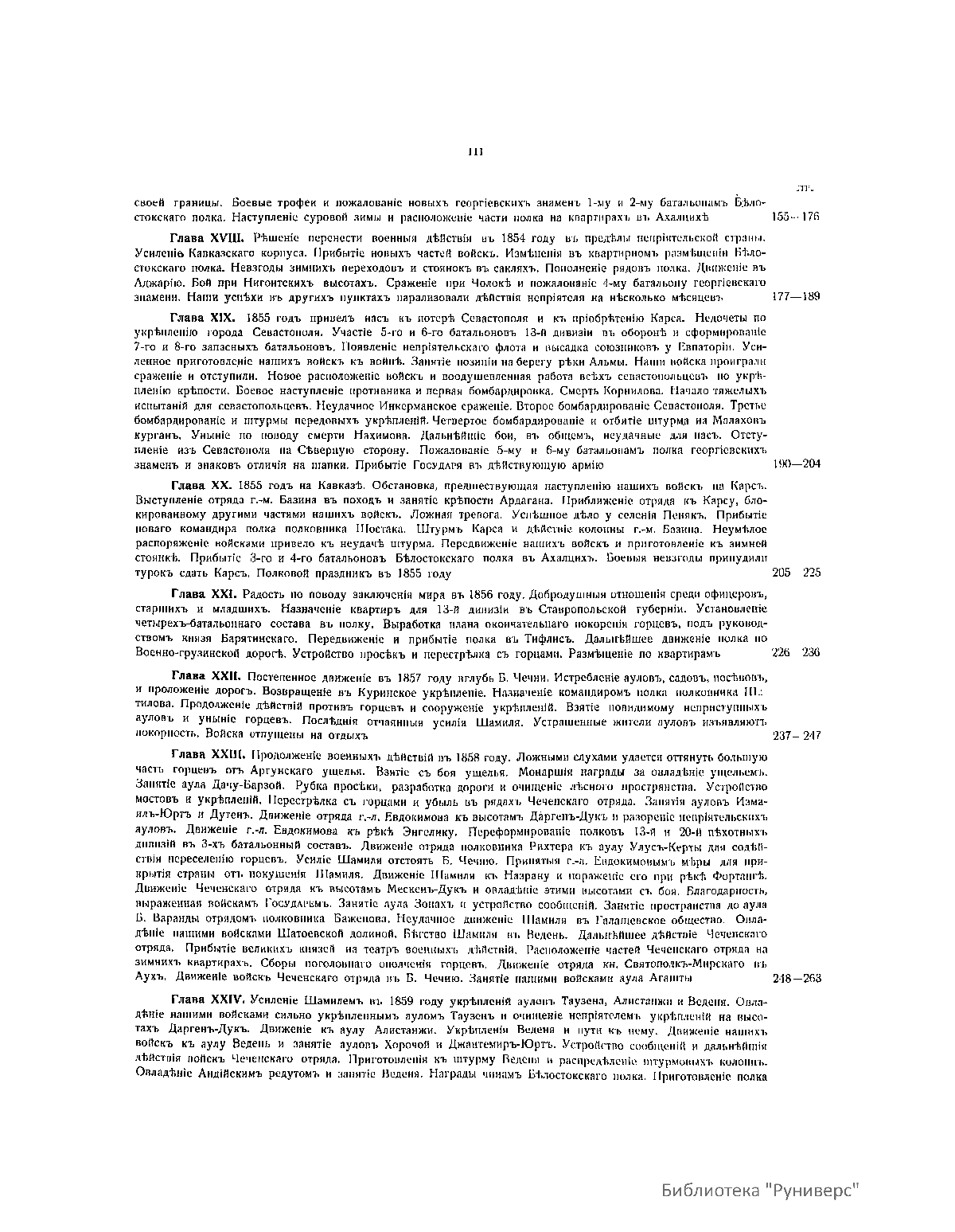 Обстоятельная история составлена капитаном Е. П. Николаевым и имеет целью представить более или менее полную и верную картину жизни полка. Перечень материалов, служивших пособием для автора, содержится в приложении № 96. Исторические материалы приводятся в строго хронологическом порядке. Оглавление с подробным содержанием каждой главы находится в начале книги. К книге прилагаются портреты, рисунки, карты, планы, схемы. Полк сформирован 12 мая 1807 г. в трехбатальонном составе из трех рот разных гарнизонных батальонов в уважение храброй защиты ими Данцига. Назван Белостокским мушкетерским полком. 22 февраля 1811 г. назван Белостокским пехотным полком. 14 февраля 1831 г. 3-й батальон отделен на сформирование Модлинского пехотного полка, взамен его поступил 3-й батальон Суздальского пехотного полка. 28 января 1833 г. присоединен 2-й батальон 47-го егерского полка, и полк приведен в шестибатальонный состав. 23 февраля 1845 г. присоединен один батальон Суздальского пехотного полка, а 16 декабря два батальона в полном составе отчислены на сформирование Ставропольского полка. 10 марта 1854 г. полк приведен в восьмибатальонный состав. 9 февраля 1856 г. сформированы стрелковые роты, а 23 августа полк приведен в трехбатальонный состав: 5-й, 6-й, 7-й и 8-й батальоны расформированы, а 4-й отделен под названием 4-го резервного батальона Белостокского пехотного полка (6 апреля 1863 г. из 4-го резервного батальона сформирован Белостокский резервный полк, названный 13 августа Рыльским пехотным полком). 25 марта 1864 г. полк назван 50-м пехотным Белостокским, а 30 августа 1873 г. – 50-м пехотным Белостокским Его Высочества герцога Саксен-Альтенбургского.