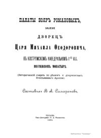 Палаты бояръ Романовыхъ, или дворецъ Царя Михаила ѳеодоровича, въ костромскомъ каѳедральномъ 1-го кл. Ипатiевскомъ монастырѣ