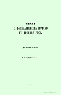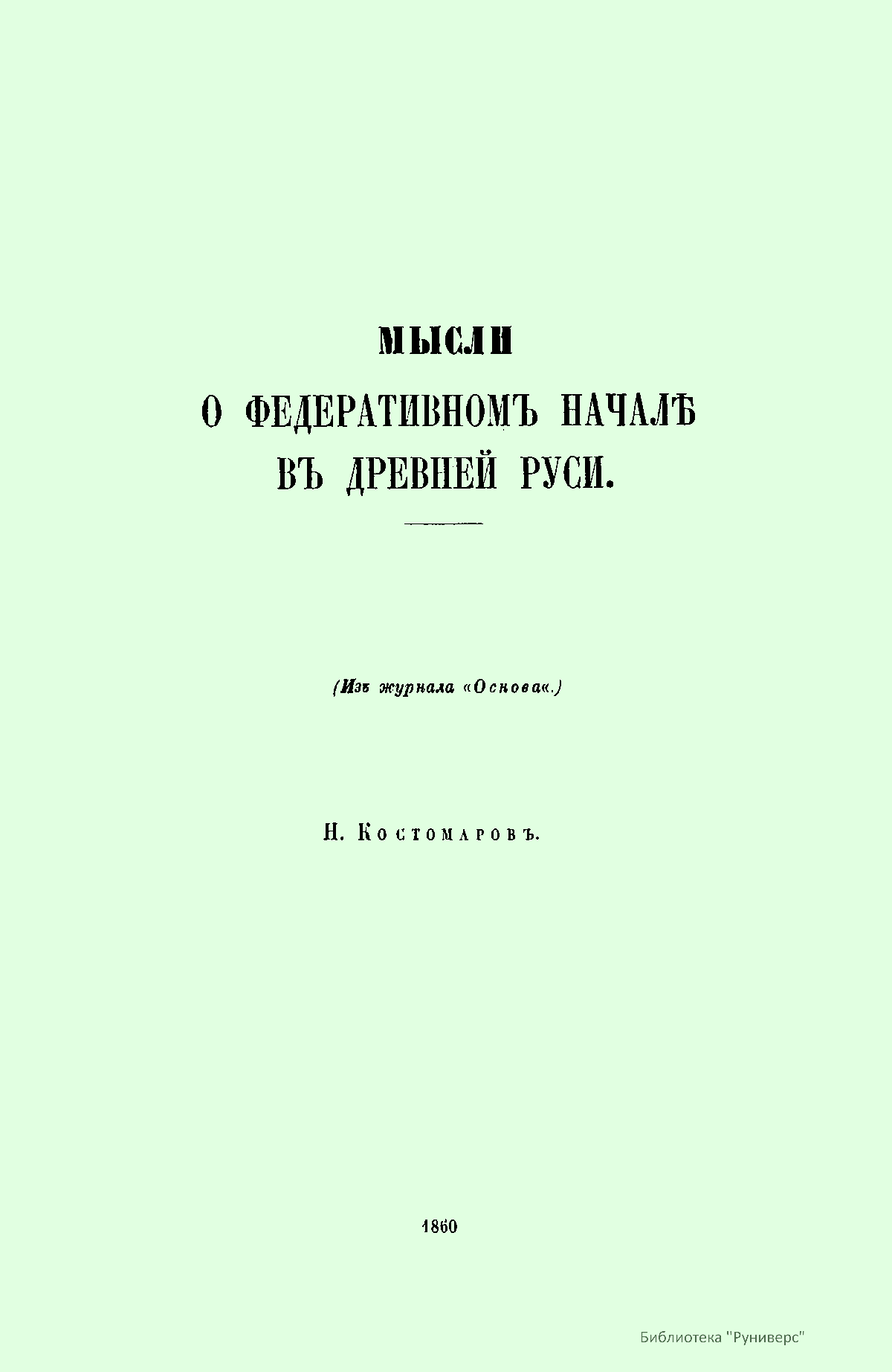 В брошюре автор рассматривает положение о том, что вся история Руси удельного уклада есть постепенное развитие федеративного начала, но вместе с тем и борьбы его с началом единодержавия. «Начала, соединяющие земли между собой, хотя и были достаточны для того, чтобы не допустить эти земли распасться и каждой начать жить совершенно независимо от других, но не настолько были сильны, чтобы заглушить всякое местное проявление и слить все части в одно целое. И природа, и обстоятельства исторические – все вело жизнь русского народа к самобытности земель, с тем чтобы между всеми землями образовалась и поддерживалась неустанно связь».
