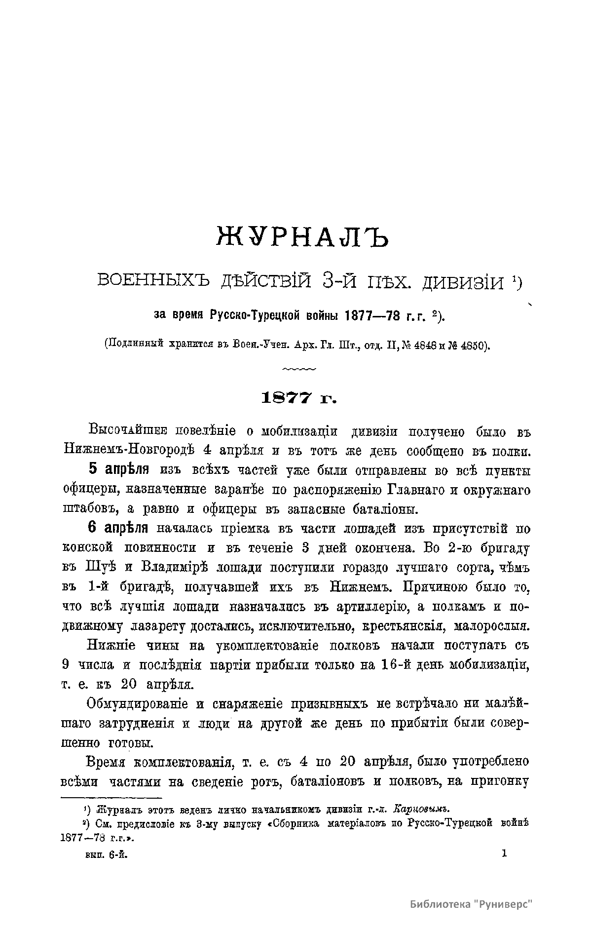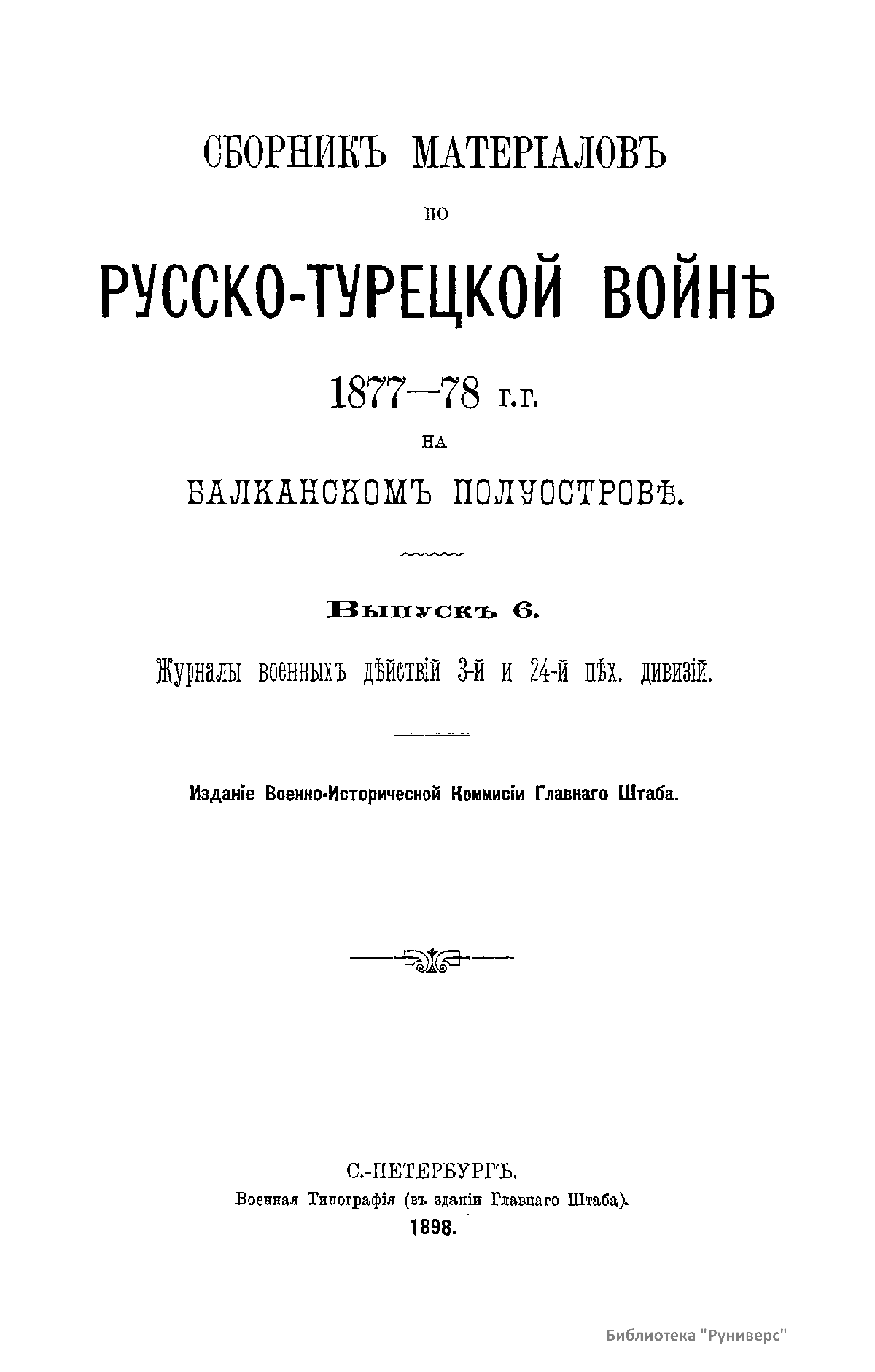 Сборникъ матерiаловъ по русско-турецкой войнѣ 1877-1878 г.г. на Балканскомъ полуостровѣ. Выпускъ 6. Журналы военныхъ дѣйствiй 3-й и 24-й пѣх. дивизiй