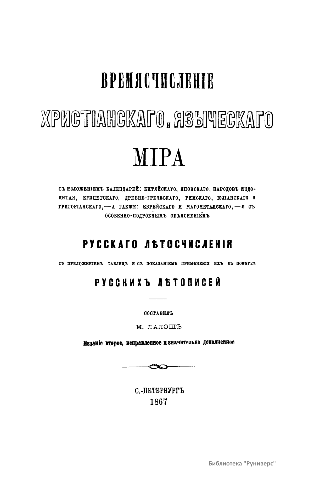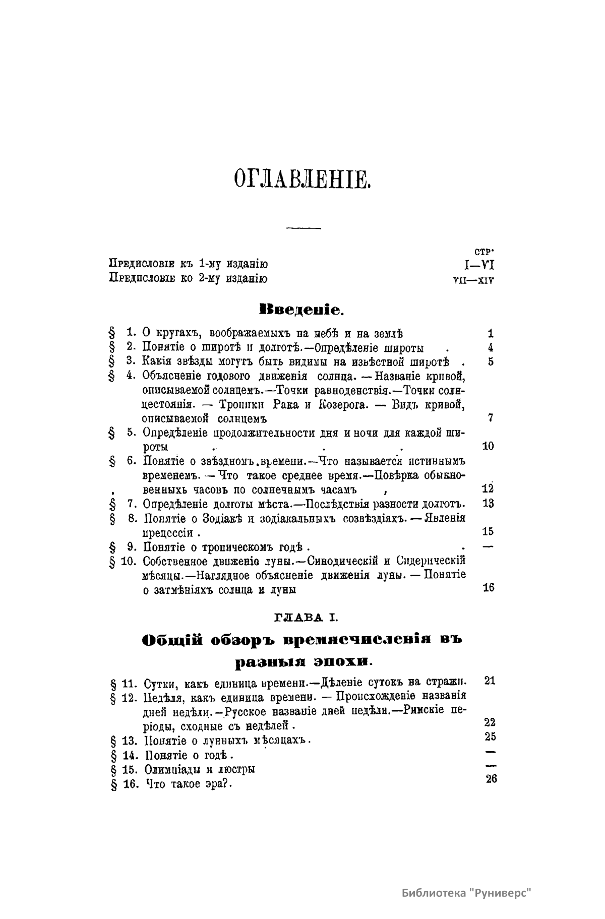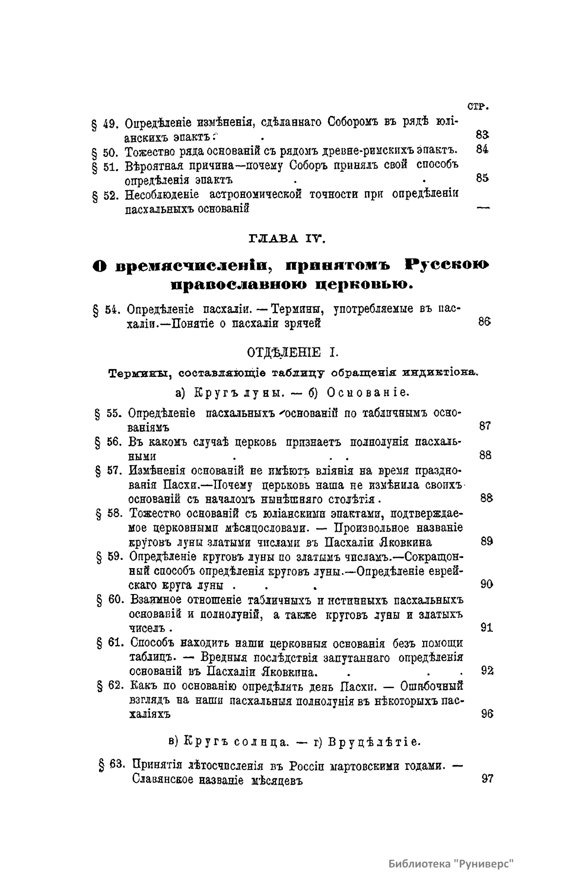 Издание предназначено для тех, кто испытывает потребность в знании правил, на которых основано времясчисление у разных народов. Автор излагает календари народов нехристианских: китайцев, японцев, народов Индокитая, египтян, древних греков, римлян, евреев, магометан; говорит об общих основаниях христианского времясчисления, о времясчислении, принятом Русской православной церковью. Отдельные главы посвящены применению пасхалии к поверке летописей и определению дня Пасхи по правилам Григорианского счисления.