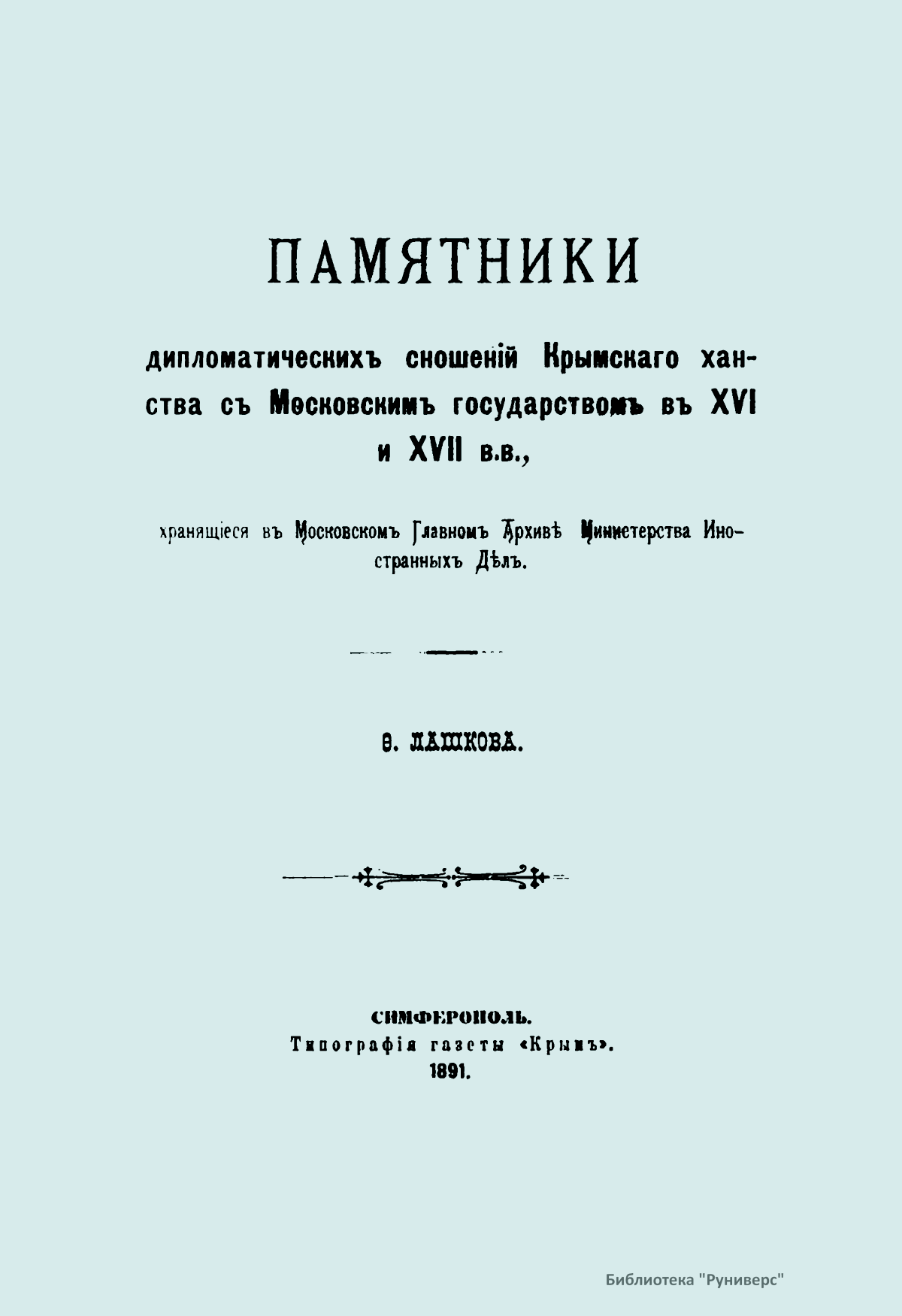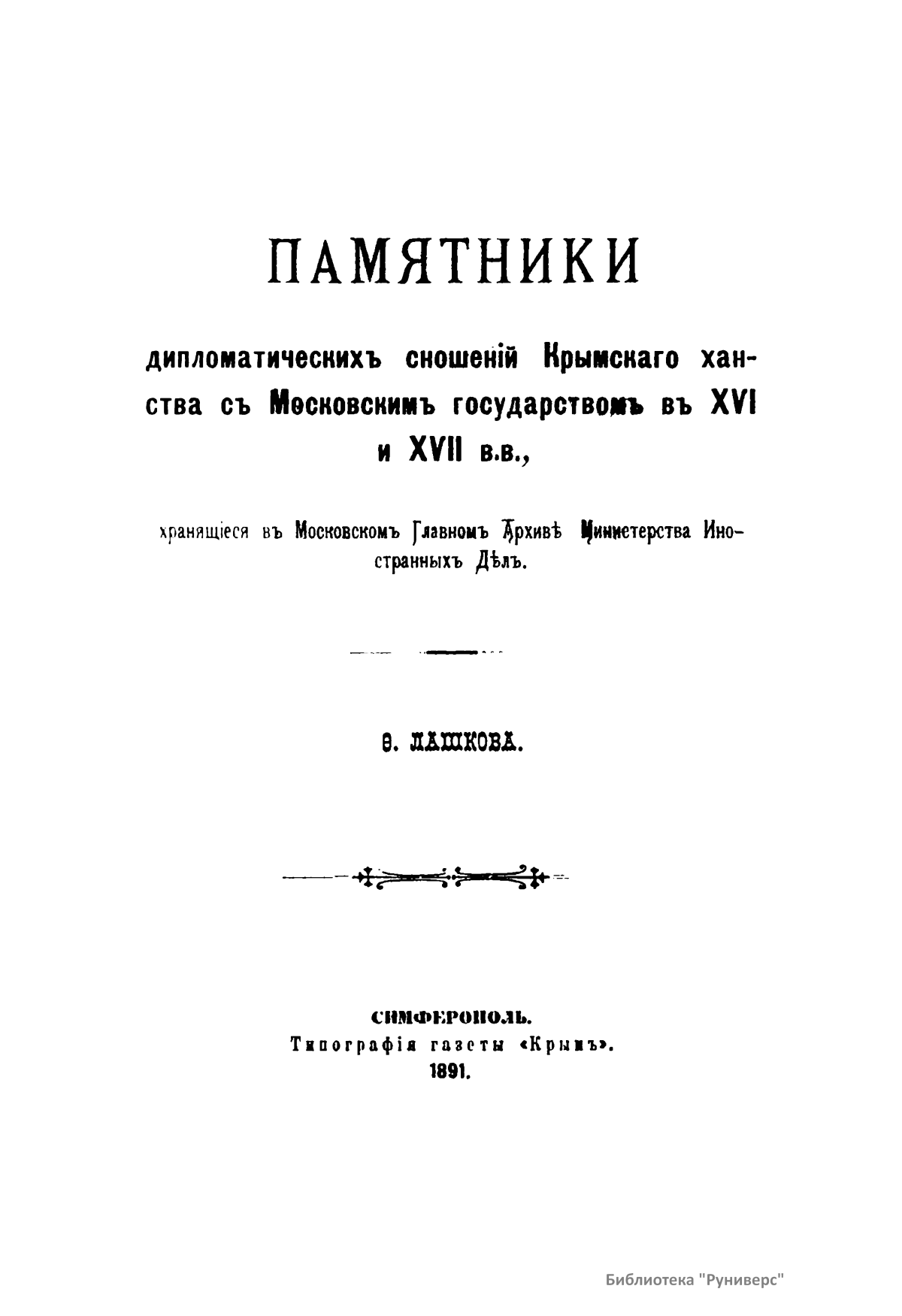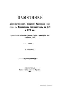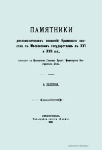 Памятники дипломатических сношений Крымского ханства с Московским государством в XVI и XVII вв.