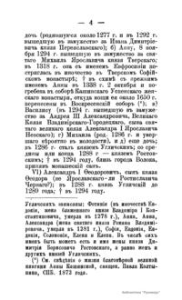 Брошюра содержит сведения об углических владетельных князьях из рода Великих князей владимирских; об углических владетельных князьях из рода Великих князей московских.
