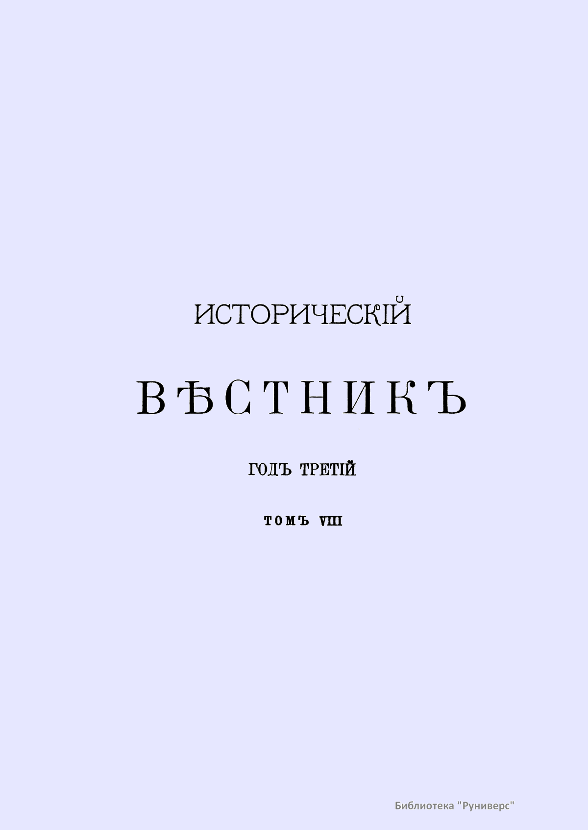 Историческiй вѣстникъ. Историко-литературный журналъ. Томъ VIII