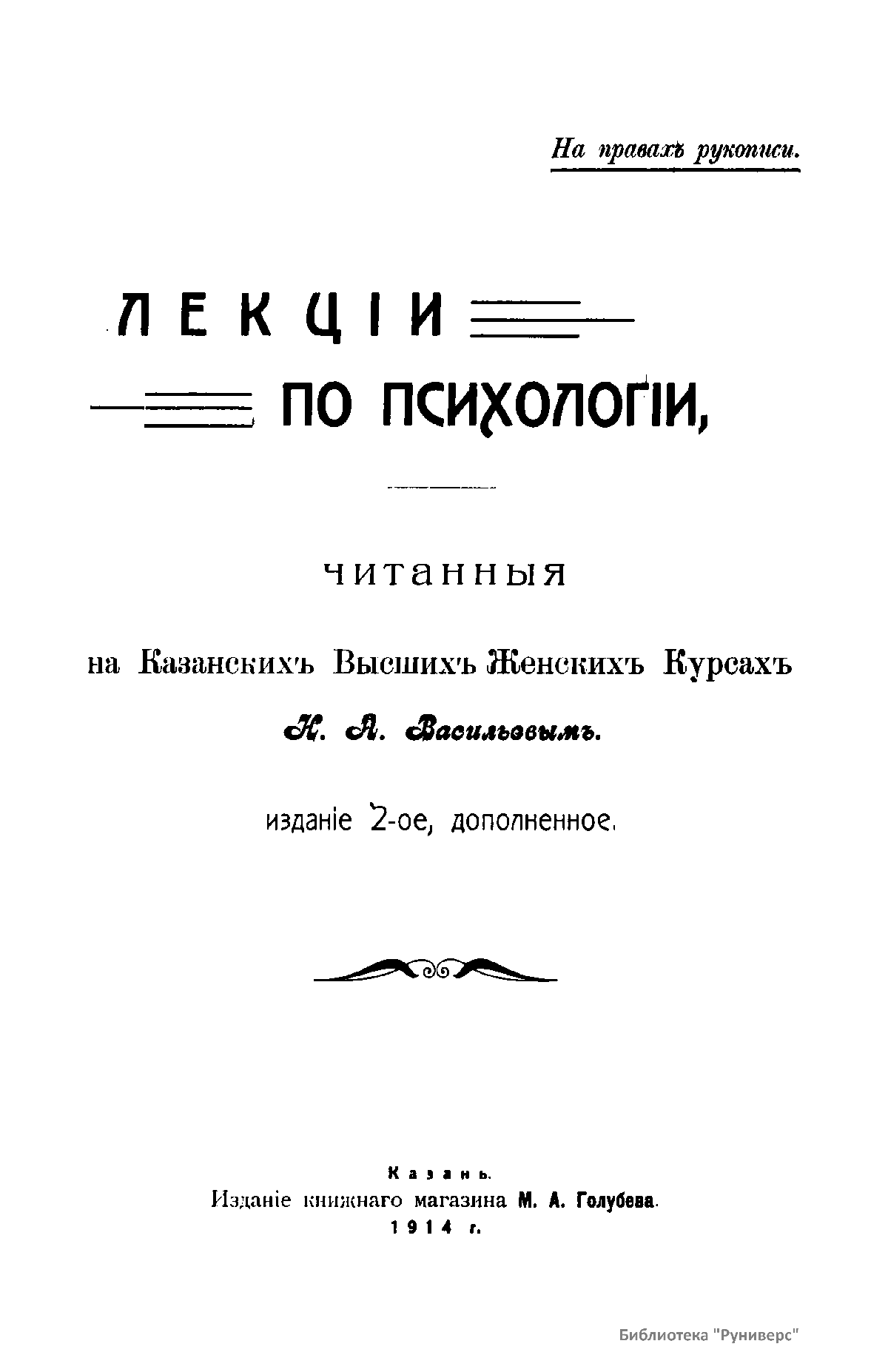 Лекцiи по психологiи, читанныя на Казанскихъ Высшихъ Женскихъ Курсахъ Н.А. Васильевымъ