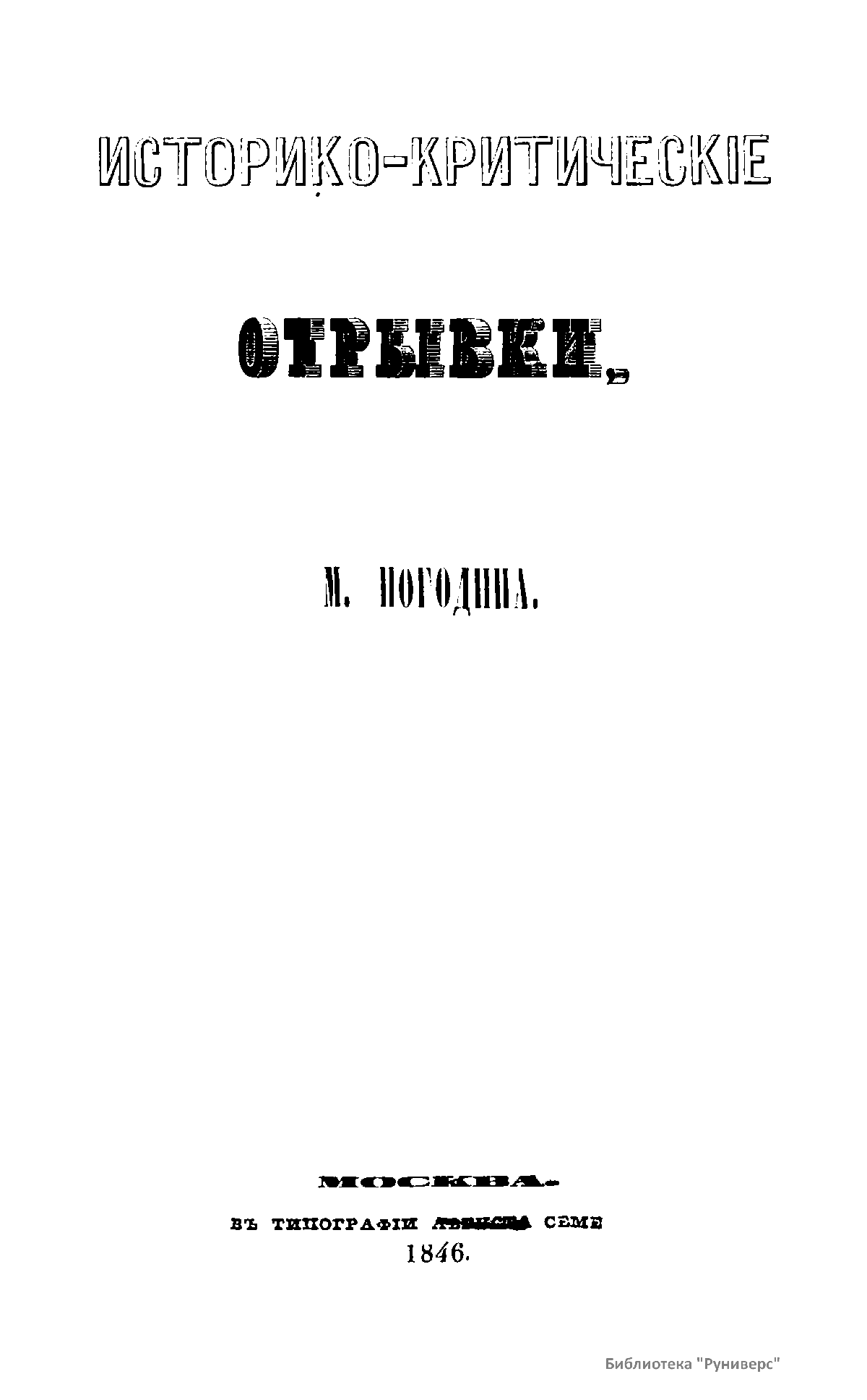 Сборник статей Погодина М.П. по русской истории, написанных им для разных журналов. Оглавление находится в конце издания.