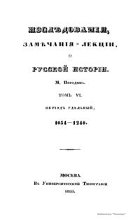 Изслѣдованiя, замѣчанiя и лекцiи о русской исторiи. Томъ VI. Перiод удѣльный, 1054-1240