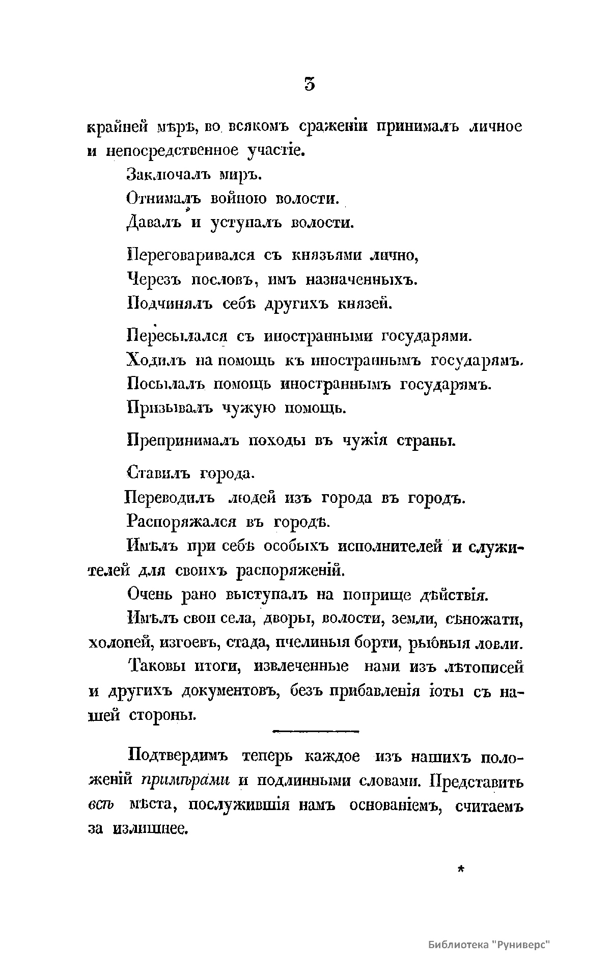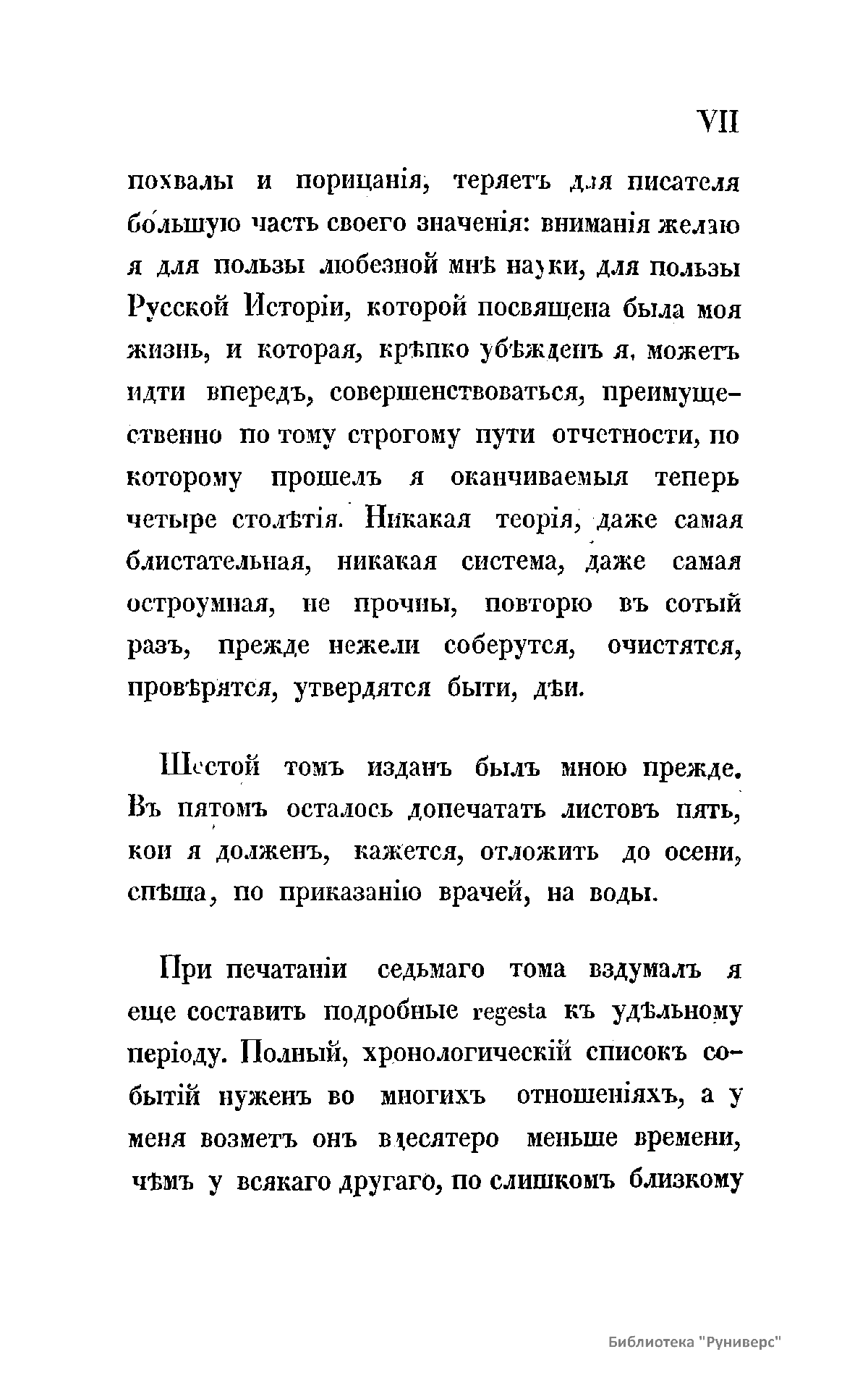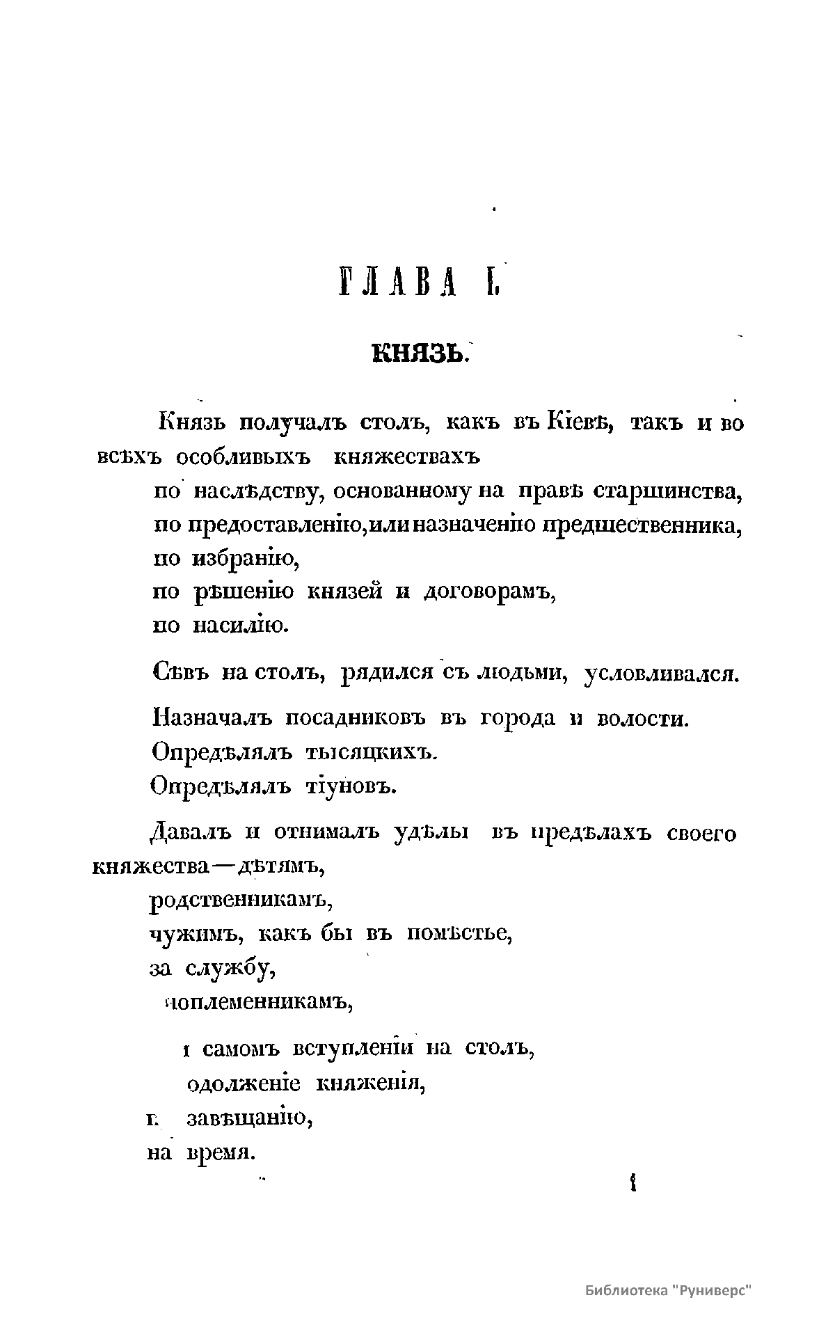 «На пользу науке, на славу Отечества, к чести своего времени» Первый том посвящен источникам древнейшей русской истории и преимущественно Несторовой летописи. В его состав вошло уже напечатанное прежде исследование, к которому присоединены замечания о прочих источниках: Русской правде, церковных уставах, северных сагах и пр. Приведен разбор всех мнений о Несторовой летописи. Предмет второго тома – происхождение Варягов-Руси. Здесь помещено первое рассуждение автора об этом предмете, исправленное и дополненное новыми исследованиями и открытиями. Автор разбирает также новые мнения о происхождении Варягов-Руси. В этом томе опубликованы лекции о славянах, в которых заключается краткое извлечение о Славянских Древностях Шафарика. Третий том содержит исследования и замечания о событиях первого периода, который автор называет Варяжским, или Норманским (862 – 1054), с объяснением всех мест Несторовой летописи, и сравнение русского начала с началом прочих западных государств, где показан источник различия между их последующими историями. Четвертый том посвящен приготовительным и общим исследованиям: об источниках для удельного периода, т.е. о летописях и их хронологии, о родах князей, о пределах и городах Ярославовых княжеств, о праве великокняжеского наследства, об отношении великого князя к прочим князьям, об отношении их между собой. В пятом томе исследуются междуусобные войны князей и их сношения, внешние войны и внешние сношения. В шестом томе автор приводит азбучный список русских князей до монгольского ига; список русских князей до монгольского ига по степеням и старшинству; список князей по княжествам и уделам. В седьмом томе автор рассуждает о князе, его дружине, боярах и отроках; о городах и их обитателях; о волостях и их отношении к городам; о военном деле; о праве; торговле; церкви, грамотности и образовании.