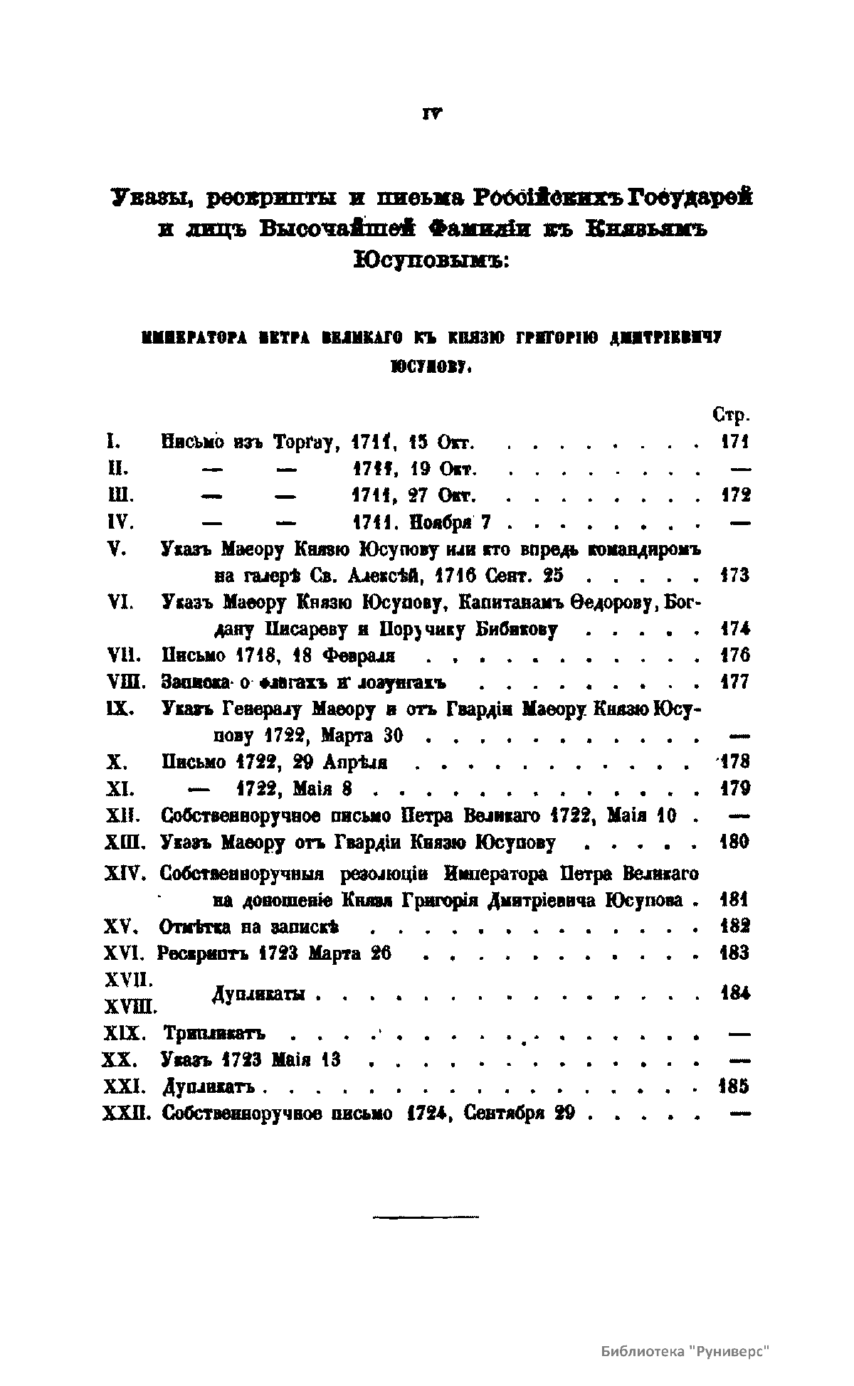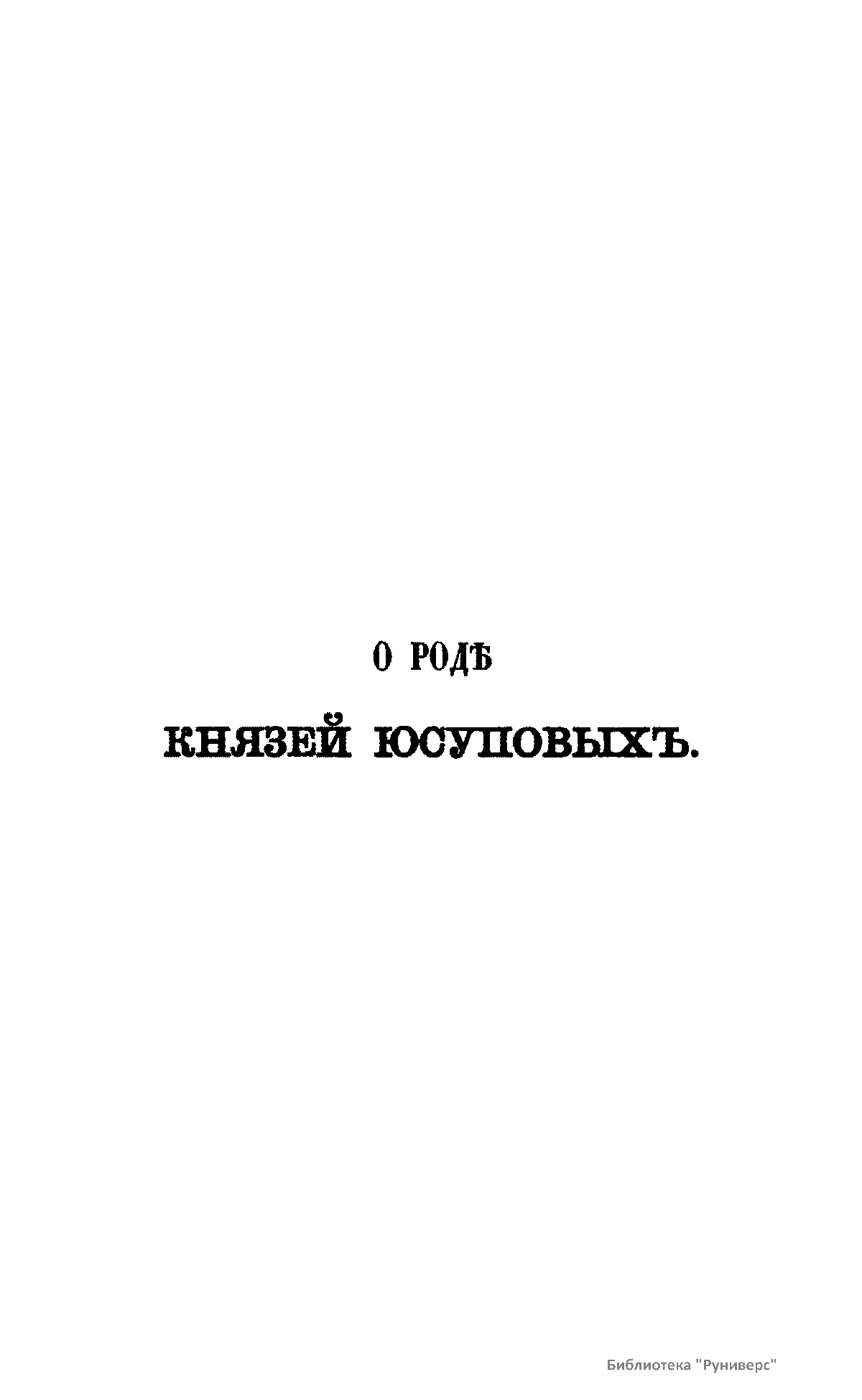 О роде князей Юсуповых, собрание жизнеописаний их, грамот и писем к ним российских государей, с XVI до половины XIX века и других фамильных бумаг, с присовокуплением поколенной росписи предков князей Юсуповых с XIV-го века. Часть вторая