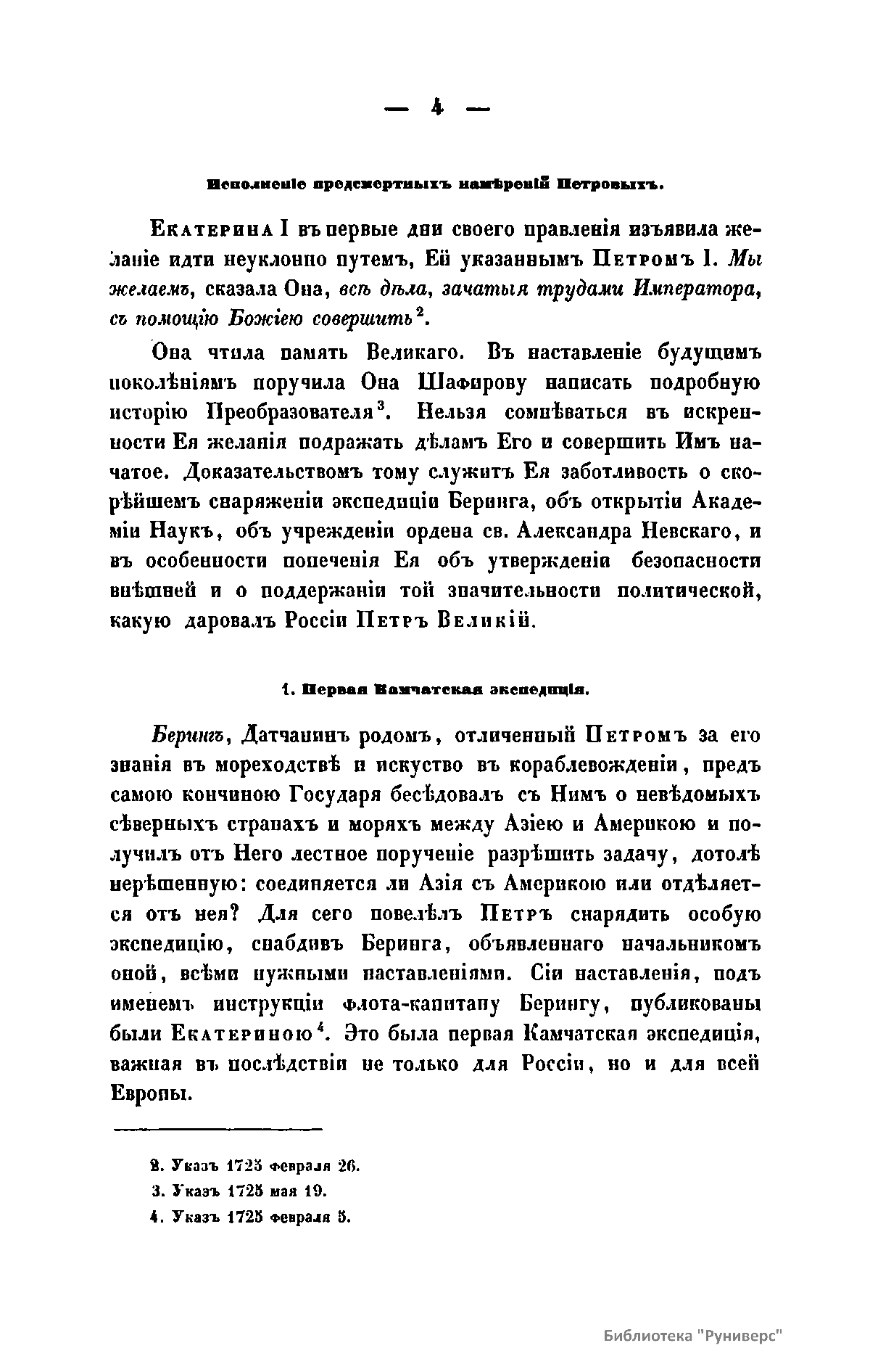 Небольшое исследование царствования Екатерины I (1725 – 1727). Автор показывает, что во все время своего царствования Екатерина следовала по пути, указанному России великим ее преобразователем Петром I.