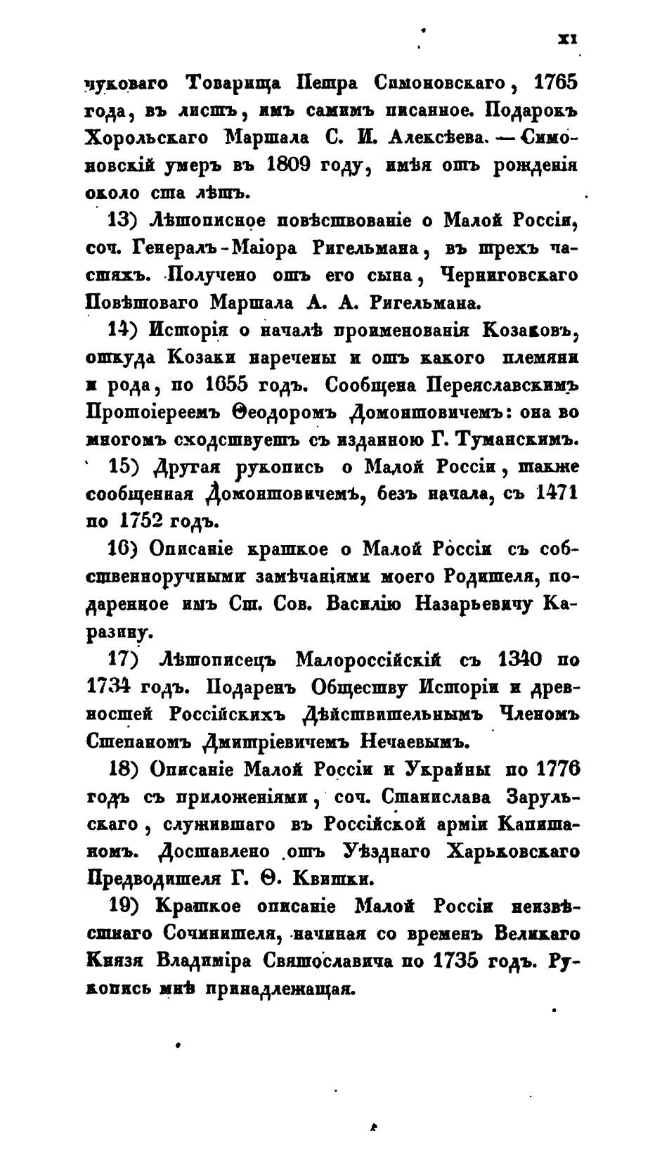 Изданный труд, принесший автору широкую популярность и научное признание. «История Малой России», к которой автор на протяжении все жизни возвращался не раз, выпуская дополненные и уточненные переиздания дает «верный перечень исторических фактов» и по сей день является одной из лучших книг, показывающих цельную историю Малороссии.