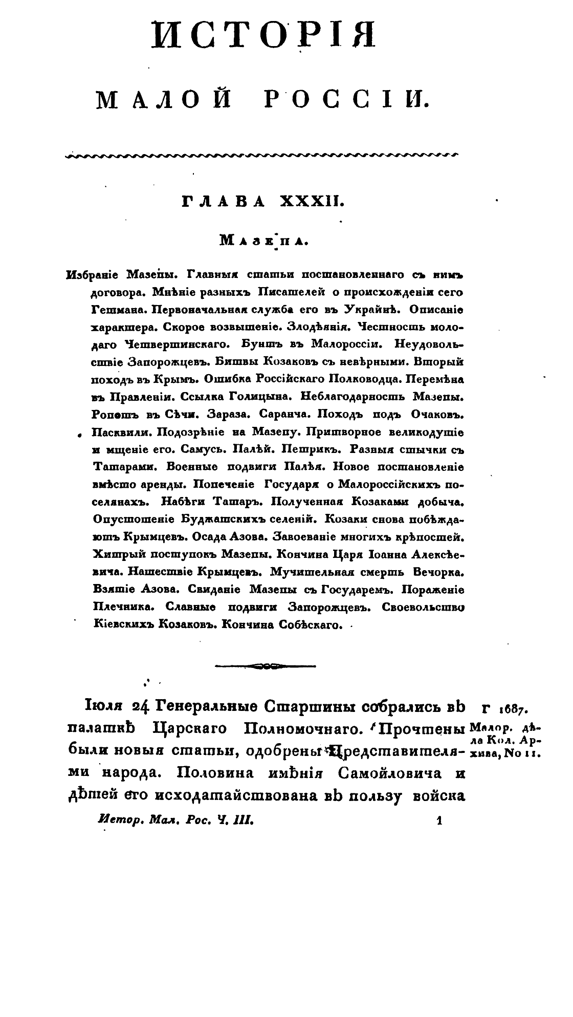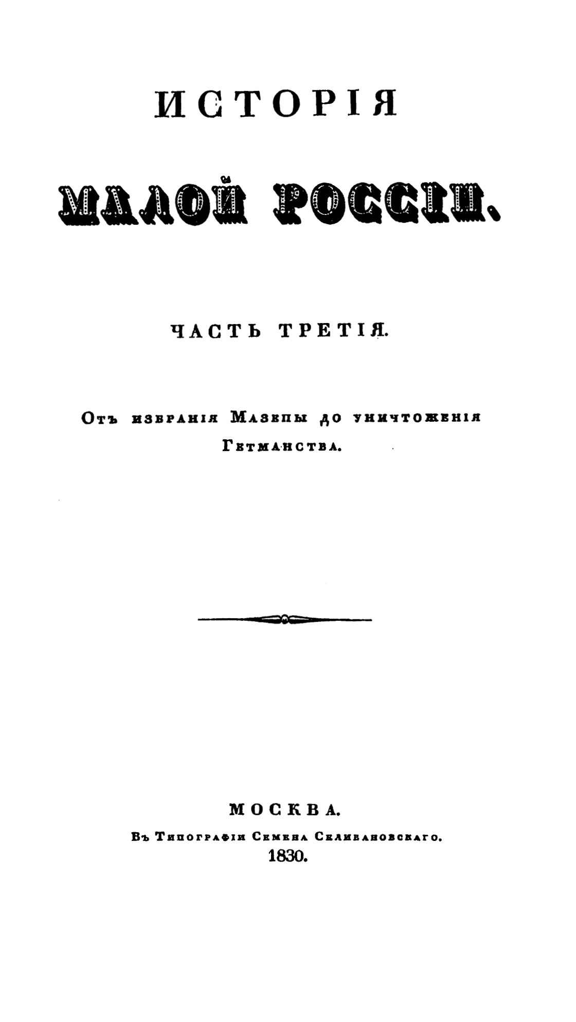 История Малой России. Часть Третья. От избрания Мазепы до уничтожения Гетманства