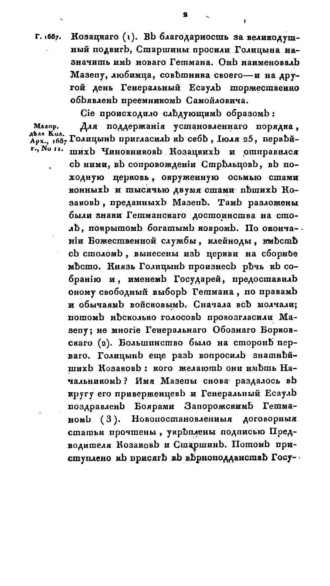 Часть Вторая. От присоединения сей страны к Российскому Государству до избрания в Гетманы Мазепы