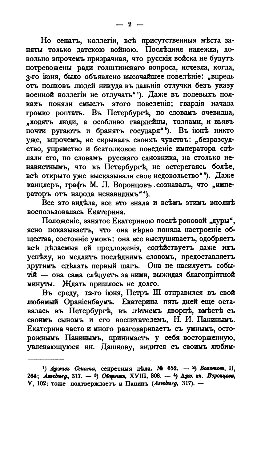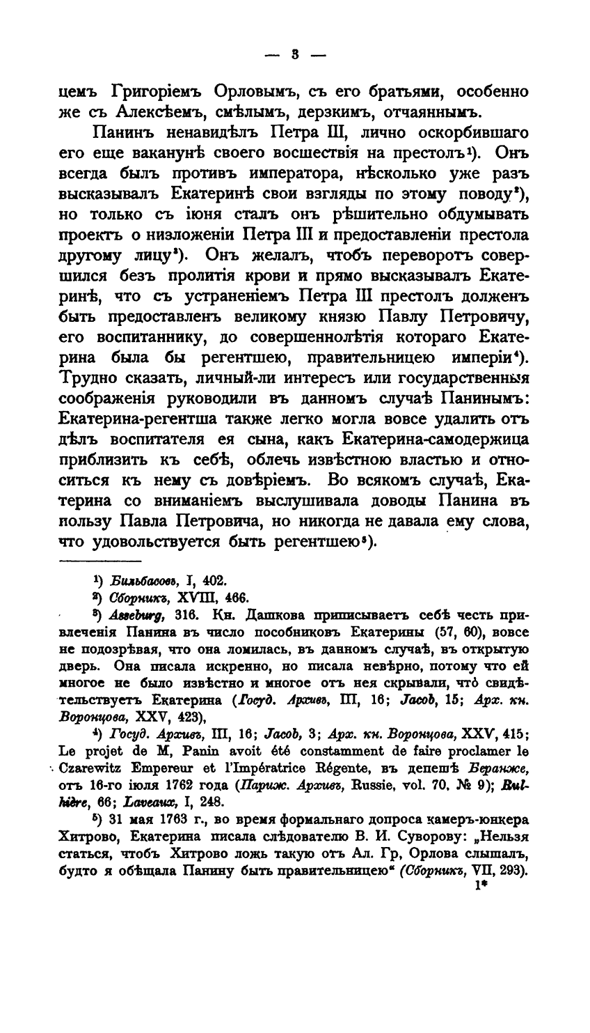 Гнев императора вызвали опубликованные Бильбасовым материалы о перевороте 1762 г. и гибели свергнутого с престола Петра III. Несмотря на то, что Бильбасов, используя все доступные отечественные и зарубежные источники, доказывал невиновность Екатерины в смерти мужа, раскрытие многих подробностей жизни императорской фамилии было сочтено неподобающим. Автору пришлось пойти на значительные сокращения и изъятия из своего труда, чтобы книга увидела свет. В последующий годы читательский интерес к запрещенной книге не ослабевал. И наконец, в 1900 году труд Бильбасова был издан в Берлине на русском языке в полной авторской редакции без цензурных пропусков.