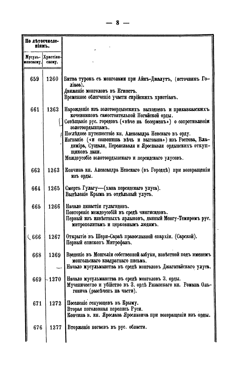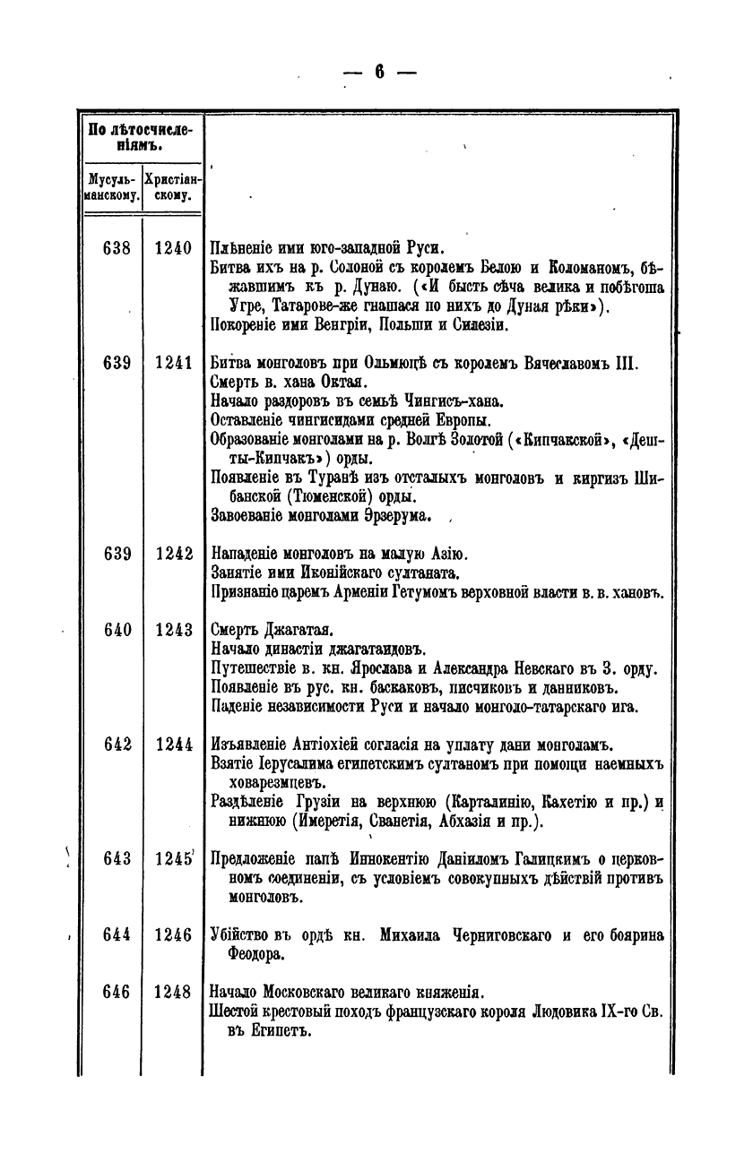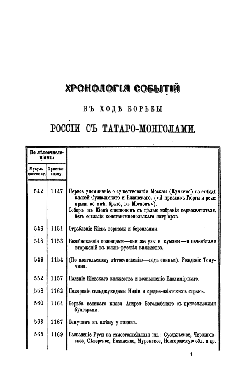 Хронологiя событiй в ходѣ борьбы Россiи с татаро-монголами