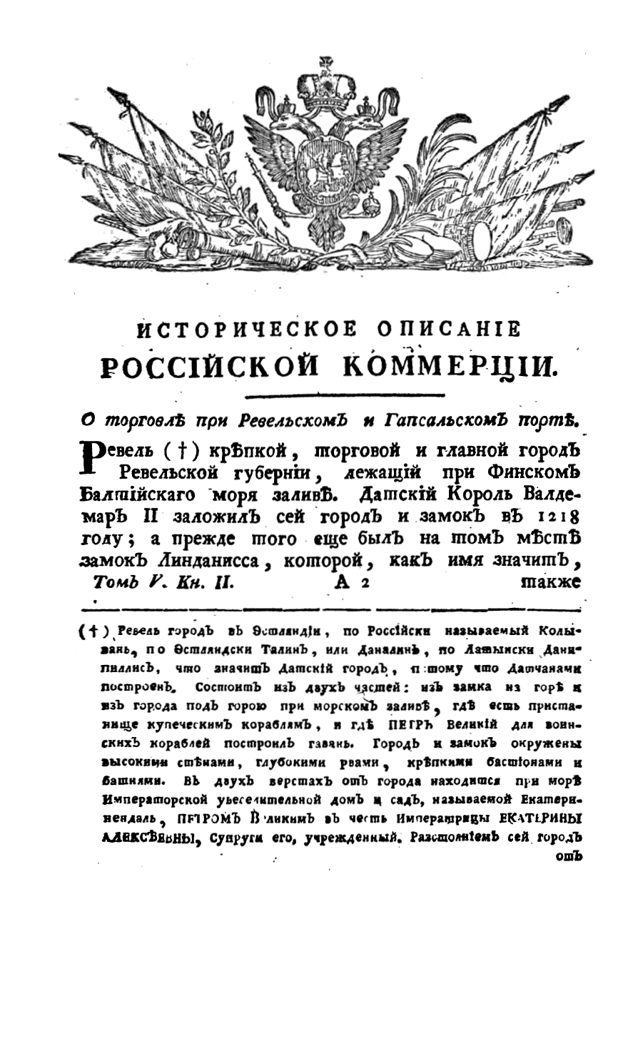 Историческое описанiе Россiйской коммерцiи при всѣхъ портахъ и границахъ отъ древнихъ временъ до Нынѣ настоящаго