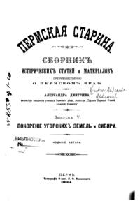 Пермская старина. Выпуск V. Покорение Угорских земель и Сибири