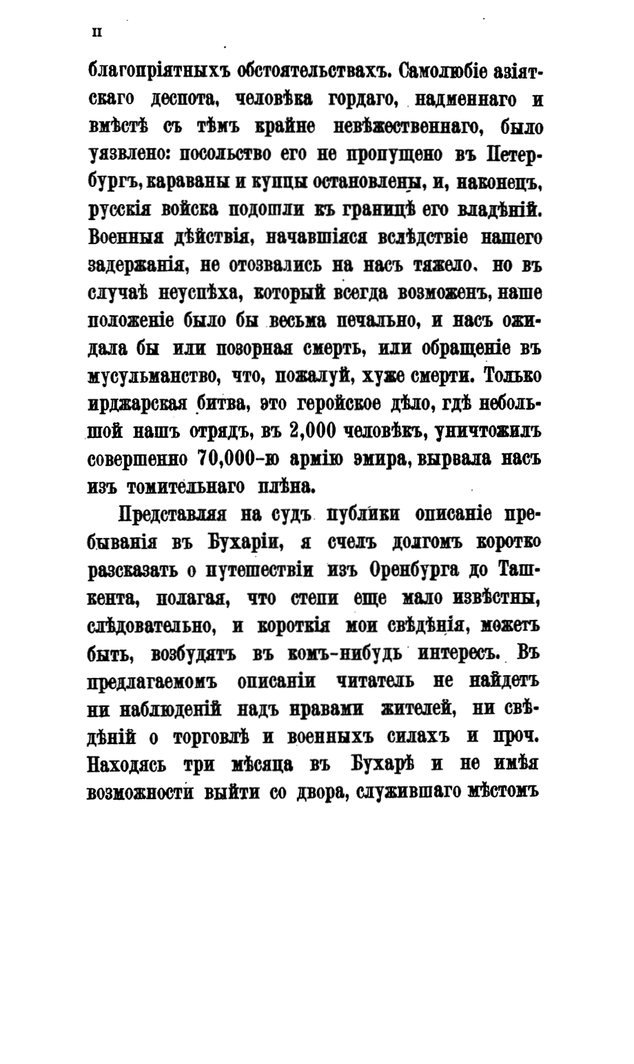 «Спросили: что за нас отдаст Россия? Не уступит ли Бухарии всех мусульманских земель? Мы засмеялись, — наши гости сконфузились. «Не отдадут ли за ваше освобождение Ташкента?» — « Что раз завоевано русским оружием, то не отдается» — «Что же за вас отдадут?» — «Ничего».